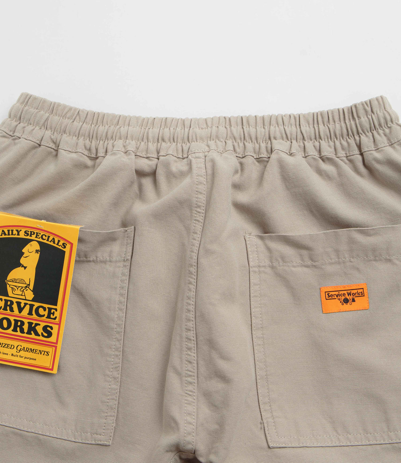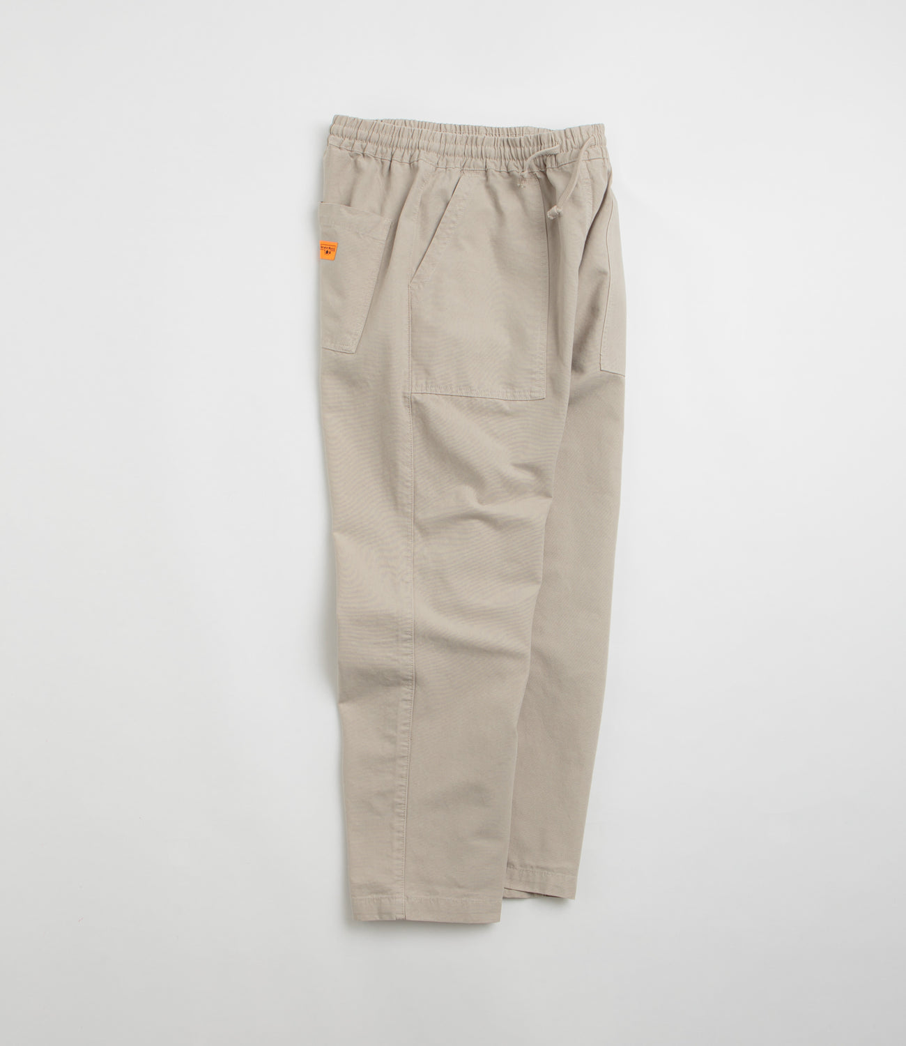 Crafted from 100% organic cotton canvas and garment-dyed for a lived-in feel, the Service Works Pants are built for ease of movement and all-day wear. Utility-inspired with an external drawstring and reinforced crotch panel, they feature four fatigue pockets for practical storage. Finished in khaki stone with subtle woven flag label branding.