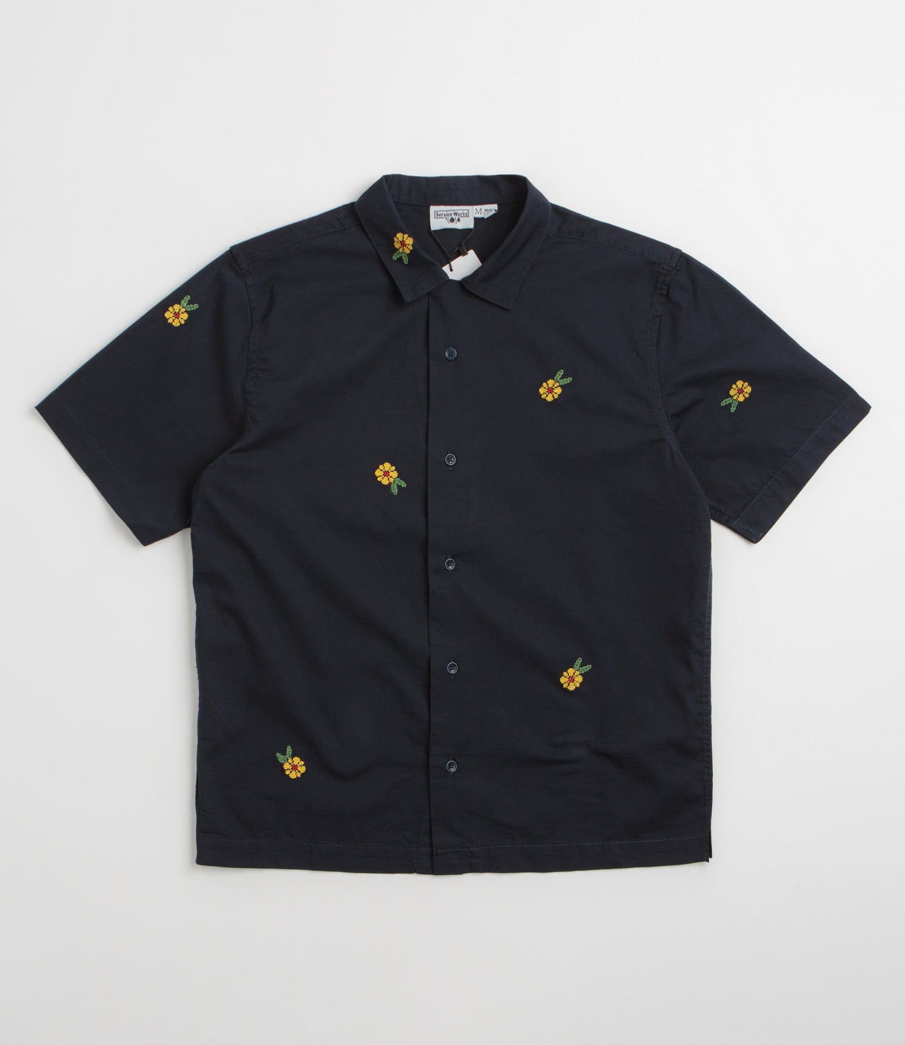 Made from 100% organic cotton poplin, this regular fit shirt keeps things simple with a resort-style collar and full-length buttons. The standout detail? All-over embroidered crosstitch graphics that add subtle texture and a fresh take on floral styling. Clean, comfortable, and ready to wear all day.