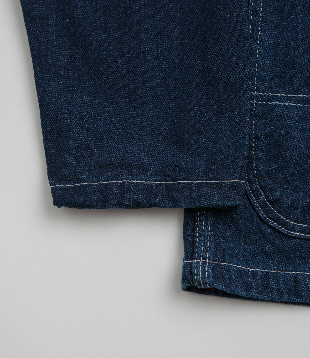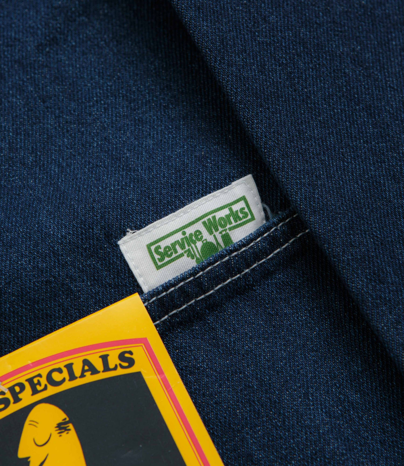 Made from heavyweight organic cotton denim, this Service Works jacket features contrast stitching and a stand collar for a clean, utility-inspired look. Cut with raglan sleeves and fastened with brushed nickel hardware, it’s finished in denim blue with four front pockets, a full-length button closure, and woven flag label branding.