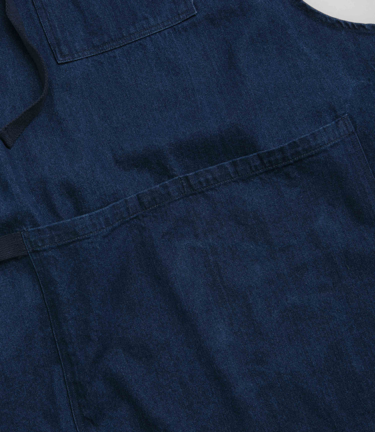 Service Works Denim Apron in One Wash. Single sized and made from heavyweight organic cotton denim, this Service Works apron is designed with an adjustable neck strap and a central chest pocket. Featuring a double-pen pocket and lower waist pockets, this denim blue Service Works apron is finished with an additional towel strap and flag label branding.