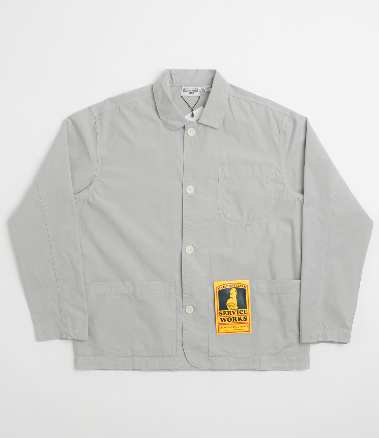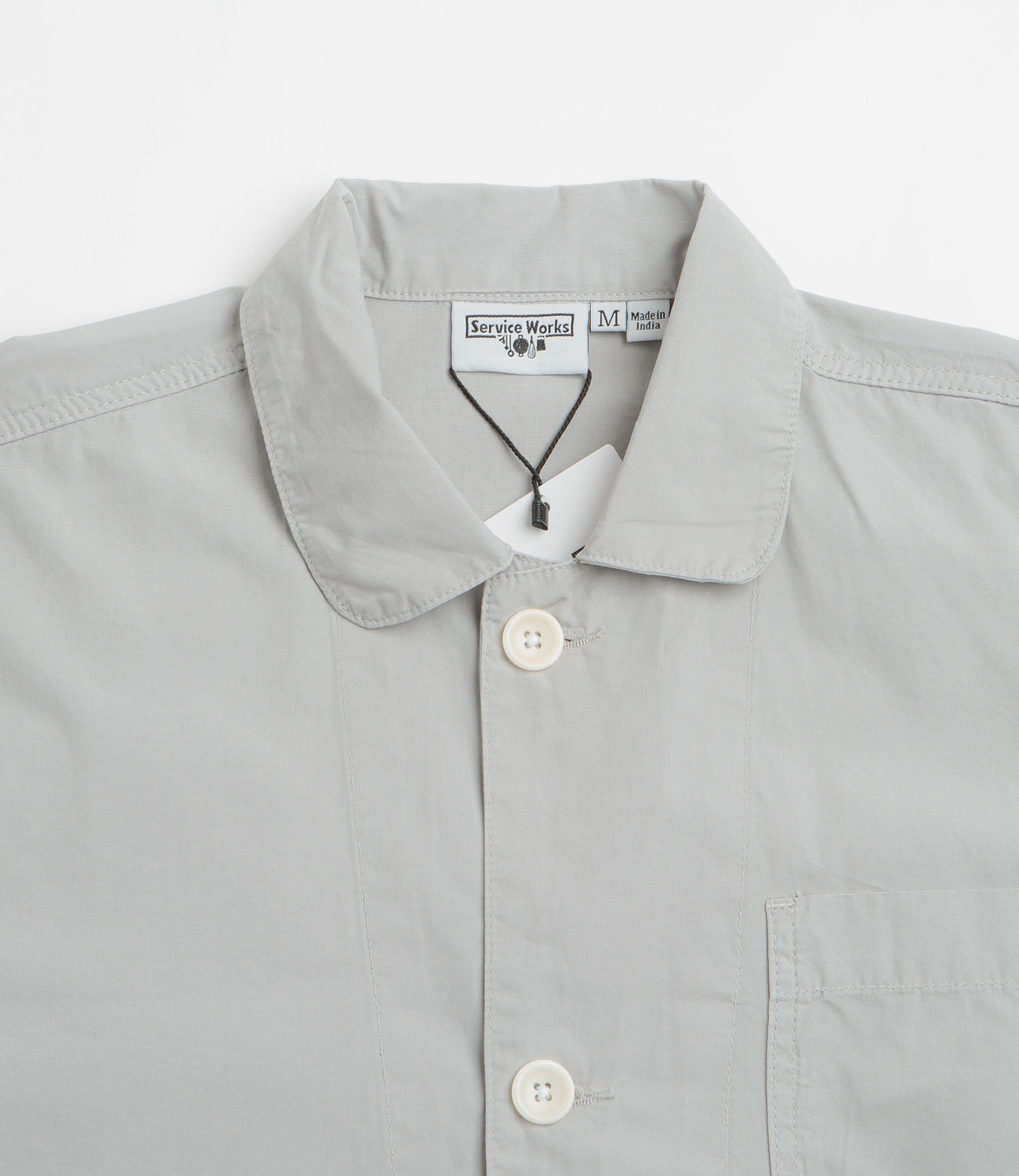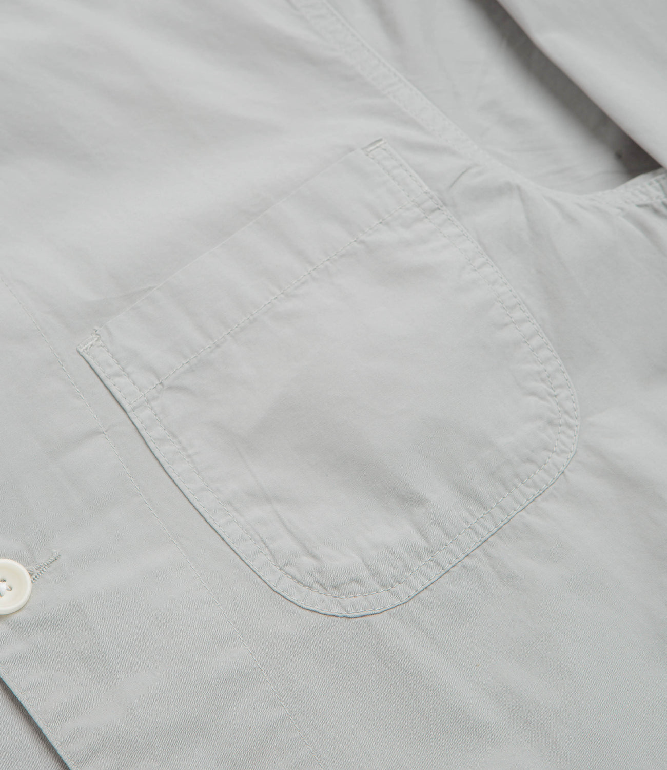 Cut from 100% organic dense cotton poplin and garment dyed for a lived-in softness, this shirt is built for easy layering. The rounded stand collar and curved hem give it a laid-back shape, while three front pockets add functional storage. Wear it open over a tee or buttoned up under a jacket - either way, it brings a relaxed, utility-inspired feel.