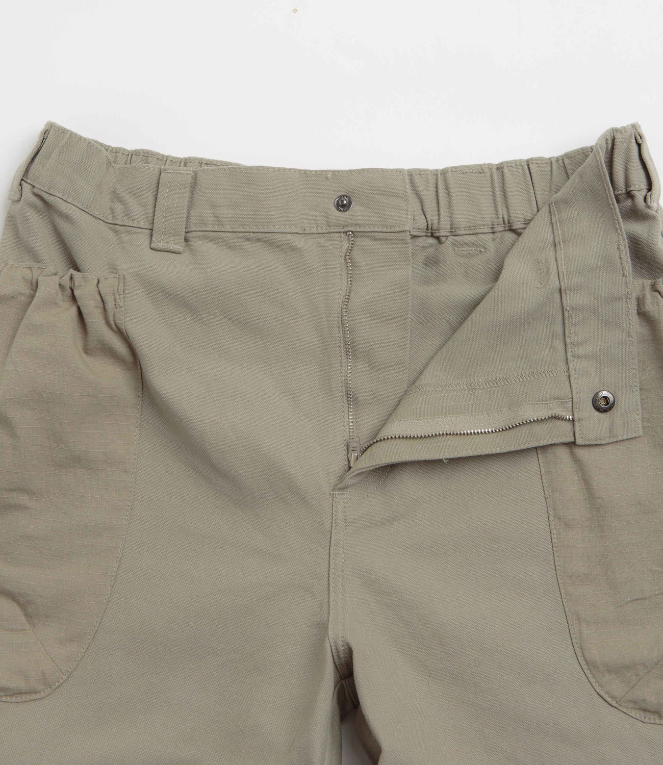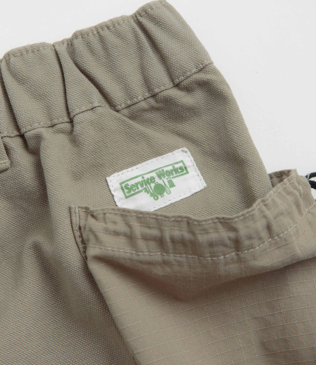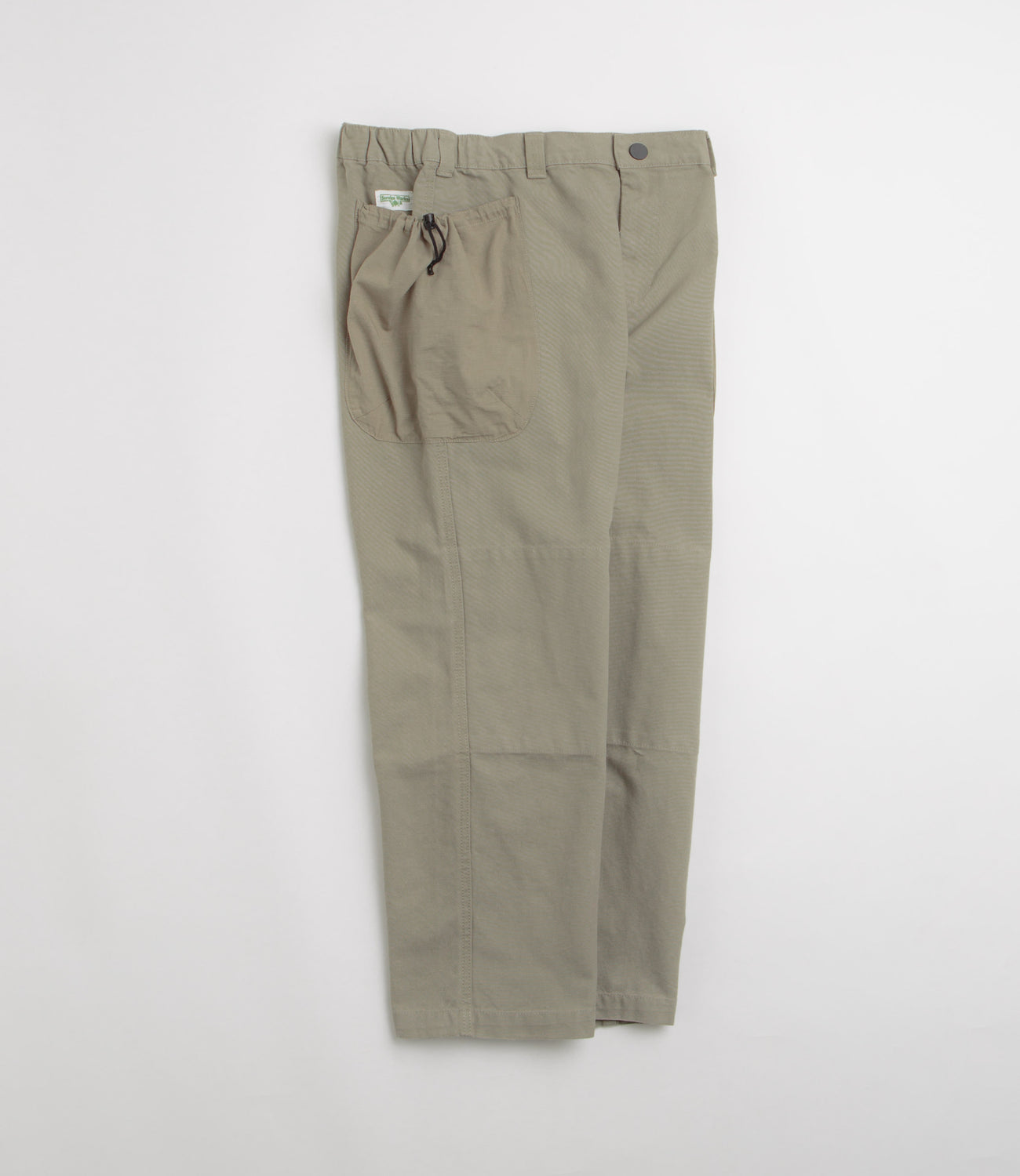 Relaxed in fit and garment dyed, these Service Works pants are built for movement with a semi-elasticated waistband and zippered fly. Double-knee panels and adjustable bellow pockets add practical durability, while the straight cut and khaki beige finish keep them versatile for everyday wear.