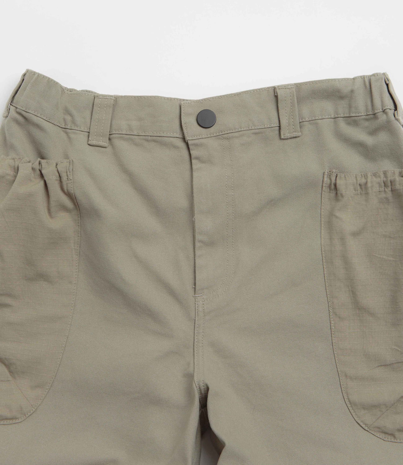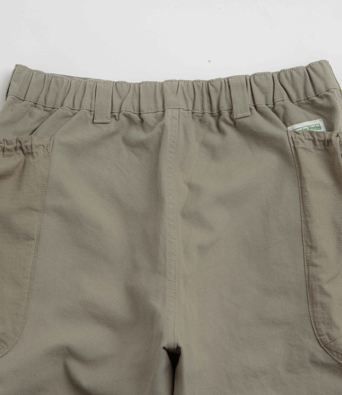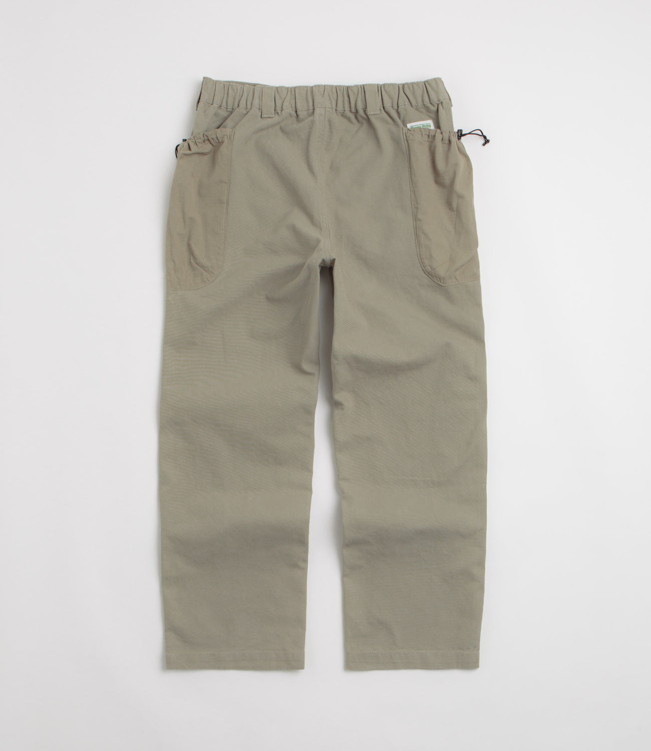 Relaxed in fit and garment dyed, these Service Works pants are built for movement with a semi-elasticated waistband and zippered fly. Double-knee panels and adjustable bellow pockets add practical durability, while the straight cut and khaki beige finish keep them versatile for everyday wear.