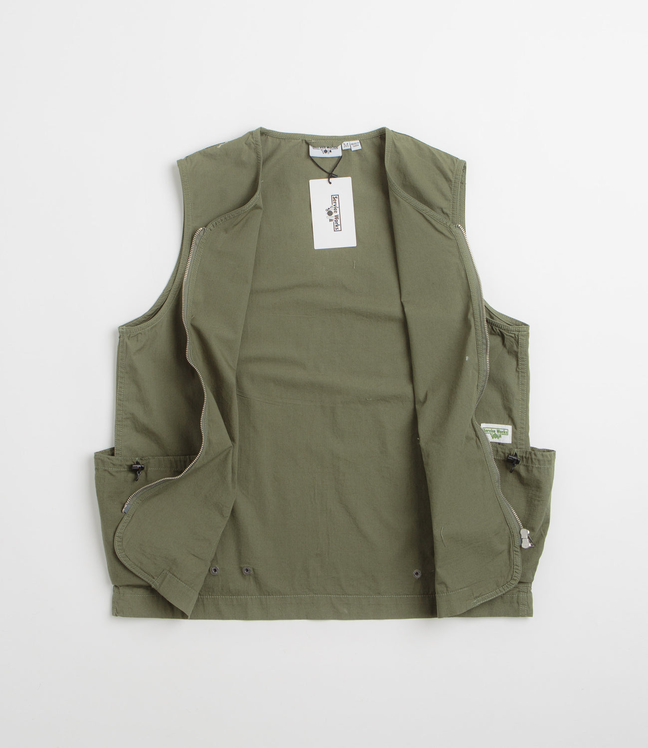 Designed for the outdoors, this utility vest is crafted from 100% organic cotton twill with a relaxed fit and garment-dyed finish for a lived-in feel. The V-neck collar and two-way zipper let you layer up or down with ease, while adjustable bellow pockets and waist epaulettes offer practical storage and a custom fit. Built to keep you moving comfortably no matter where you’re headed.