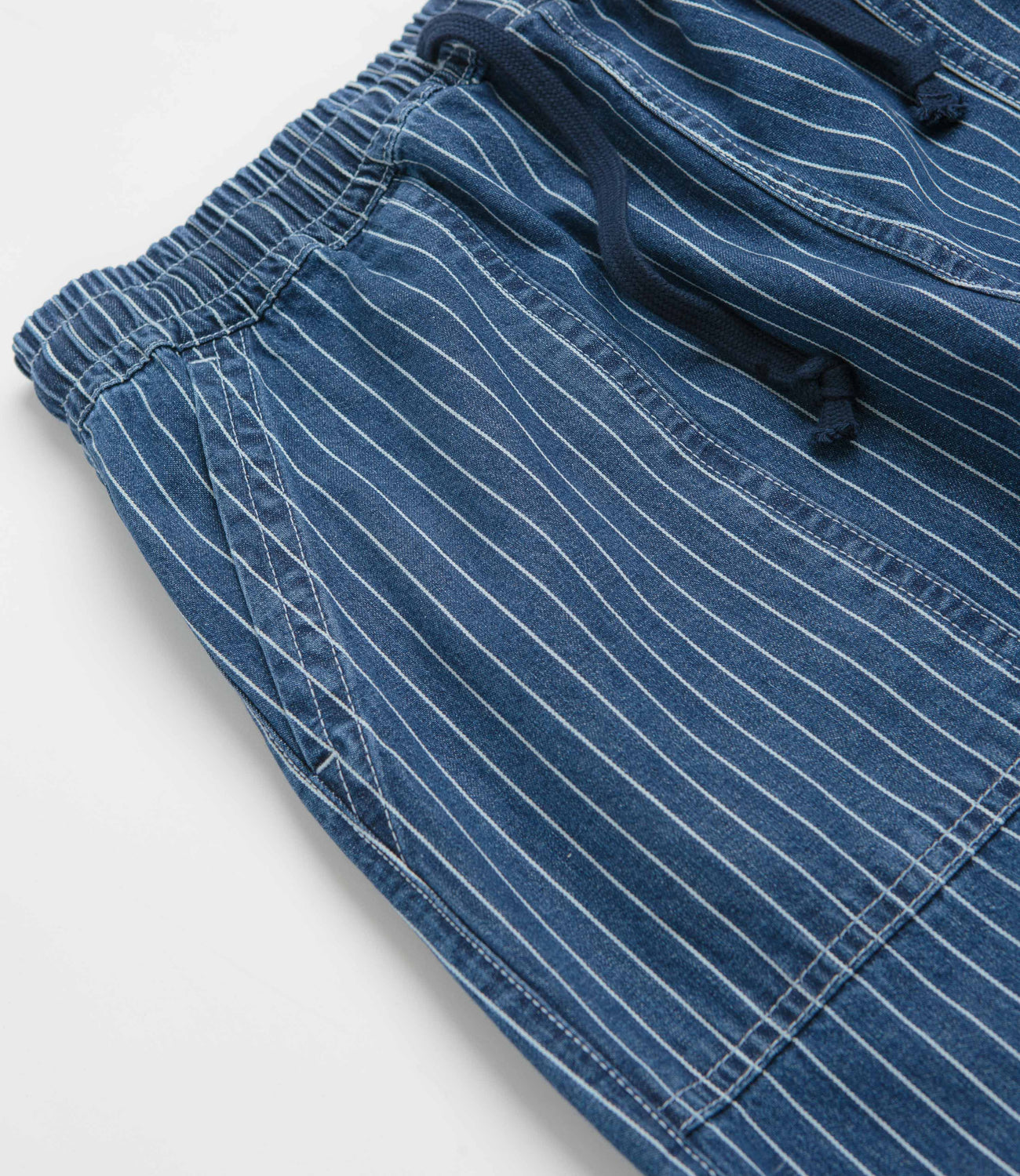 Made to move with you, these relaxed-fit pants are cut from 100% organic cotton denim with an all-over pinstripe pattern. The elasticated drawcord waistband keeps things comfortable, while a reinforced crotch panel adds extra durability for active days. Two side and two rear pockets handle storage, and the straight leg cut keeps the fit easy. Finished with a woven label for a clean touch.