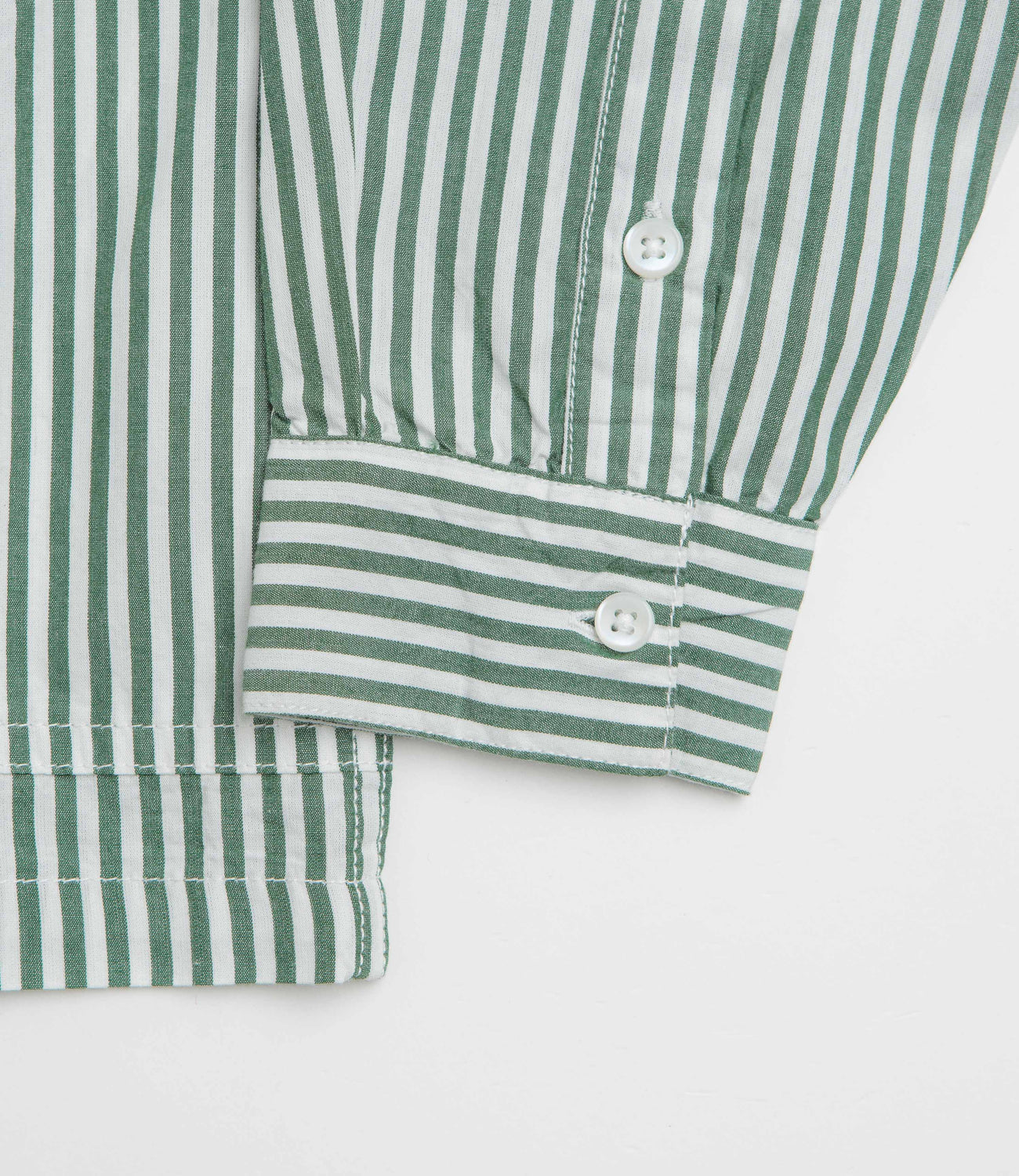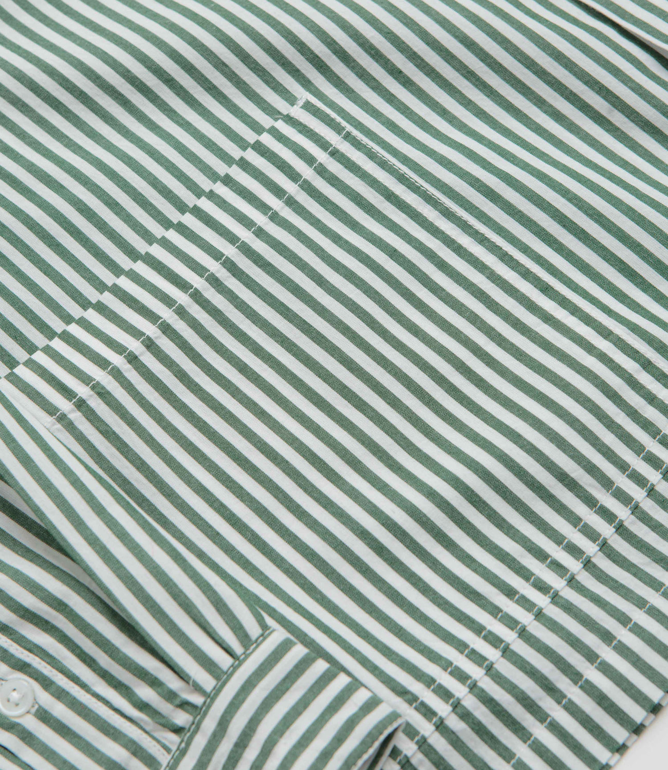 Cut from 100% organic cotton poplin with an all-over Oxford stripe, this shirt keeps things light, crisp, and easy to wear. The wide placket and regular fit give it a relaxed feel, while two waist pockets and adjustable cuffs add everyday function. Finished with subtle side-seam branding, it’s a versatile layer.