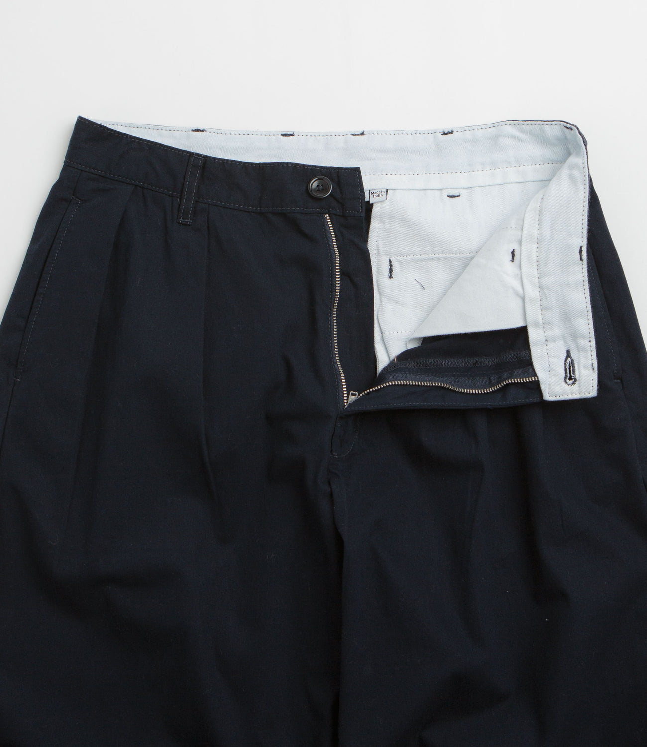 - Wide balloon cut with double pleats and loose fit