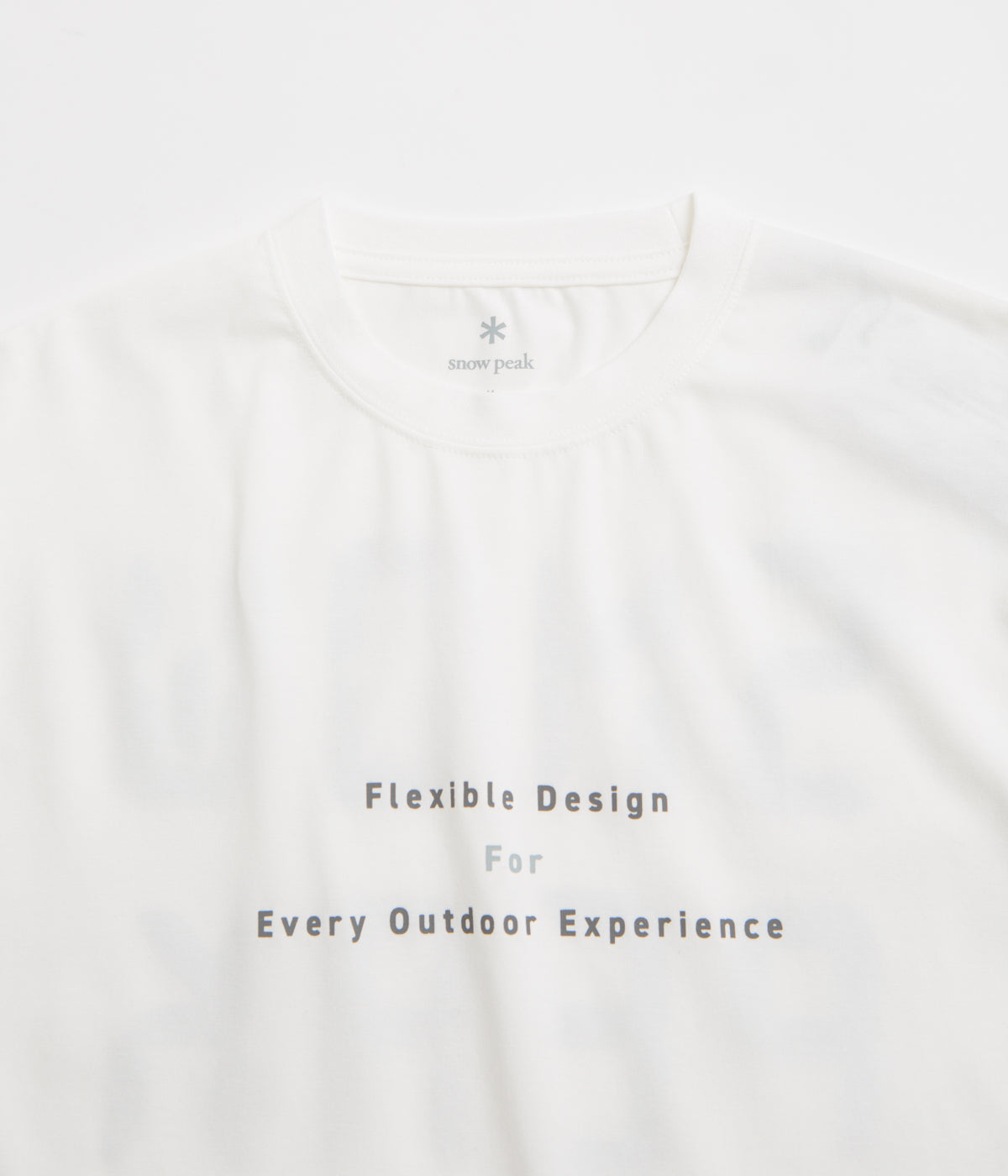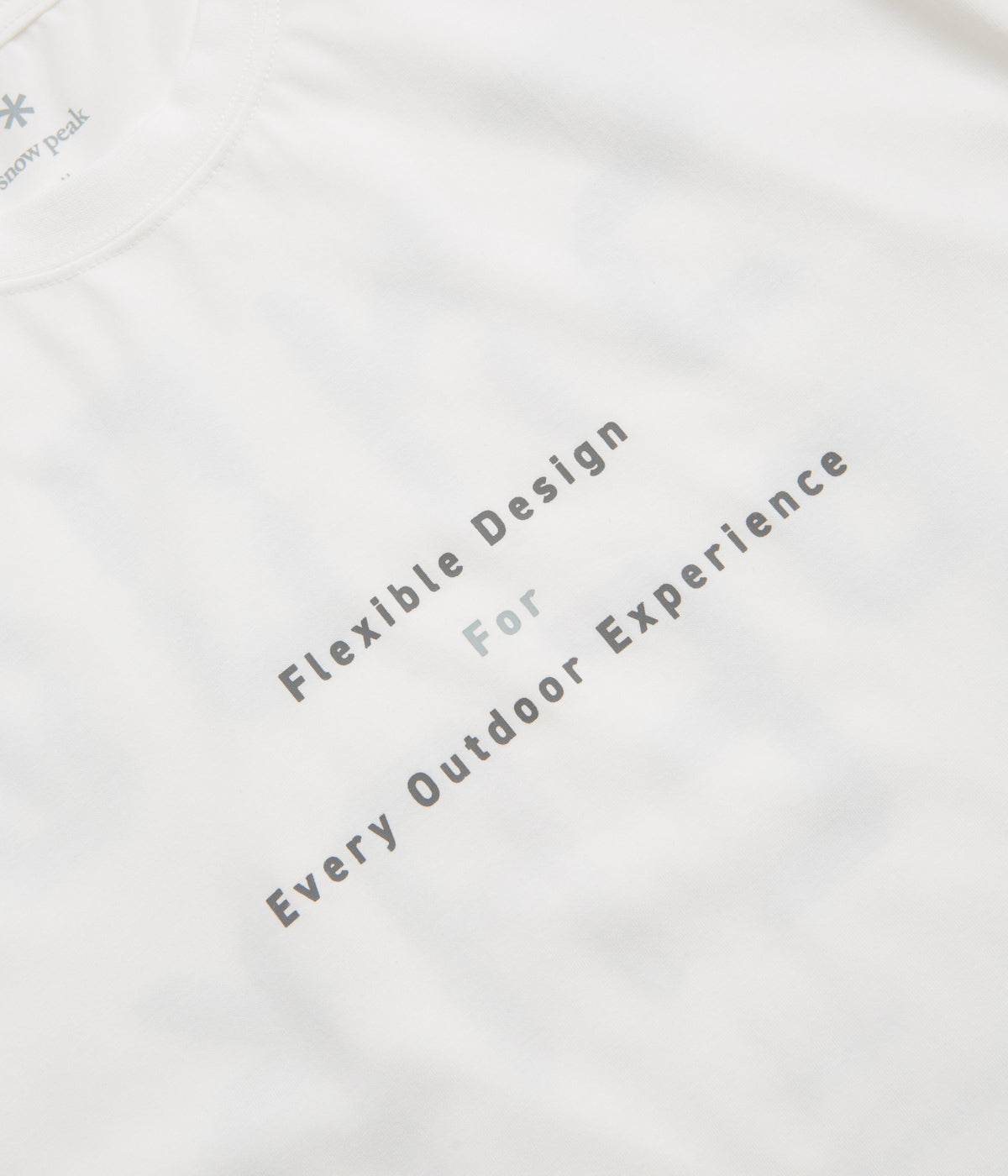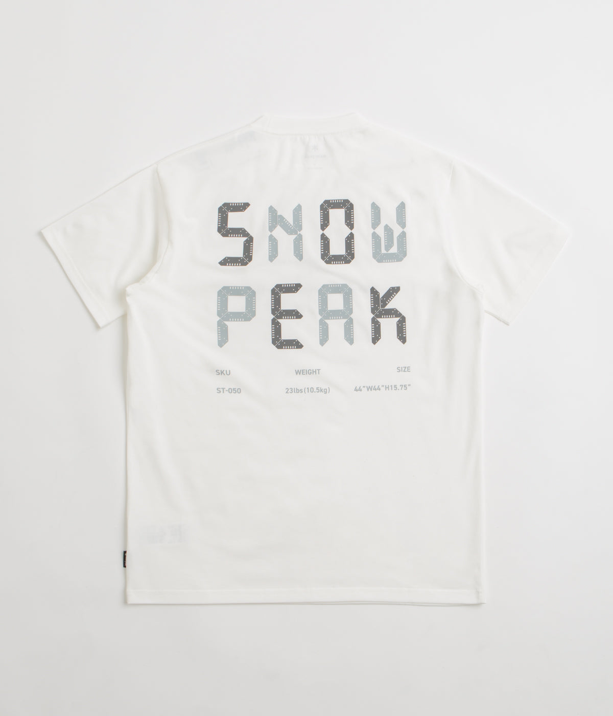 Soft and simple, this off-white tee from Snow Peak brings a clean look with graphics on both the front and back for a bit of extra character. Made with a comfortable cotton-poly blend and finished with a rib knit collar and a woven flag label for subtle detail.