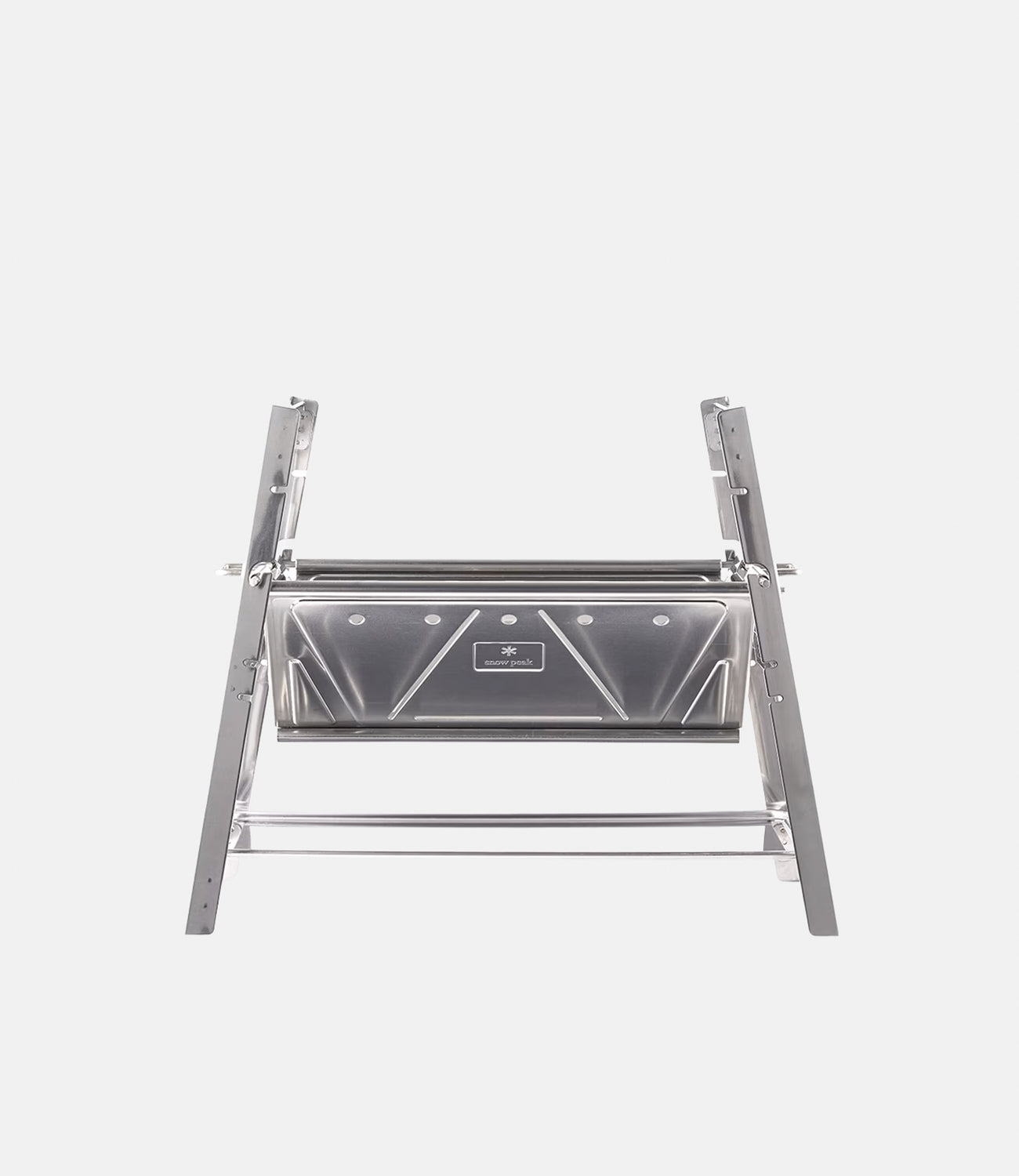 A compact, portable fireplace built for small-scale fires. Made from durable stainless steel, it develops a unique patina with each use. Featuring two sturdy legs, a base plate, and a simple fireplace body, it’s designed to make campfires easy, wherever you go.