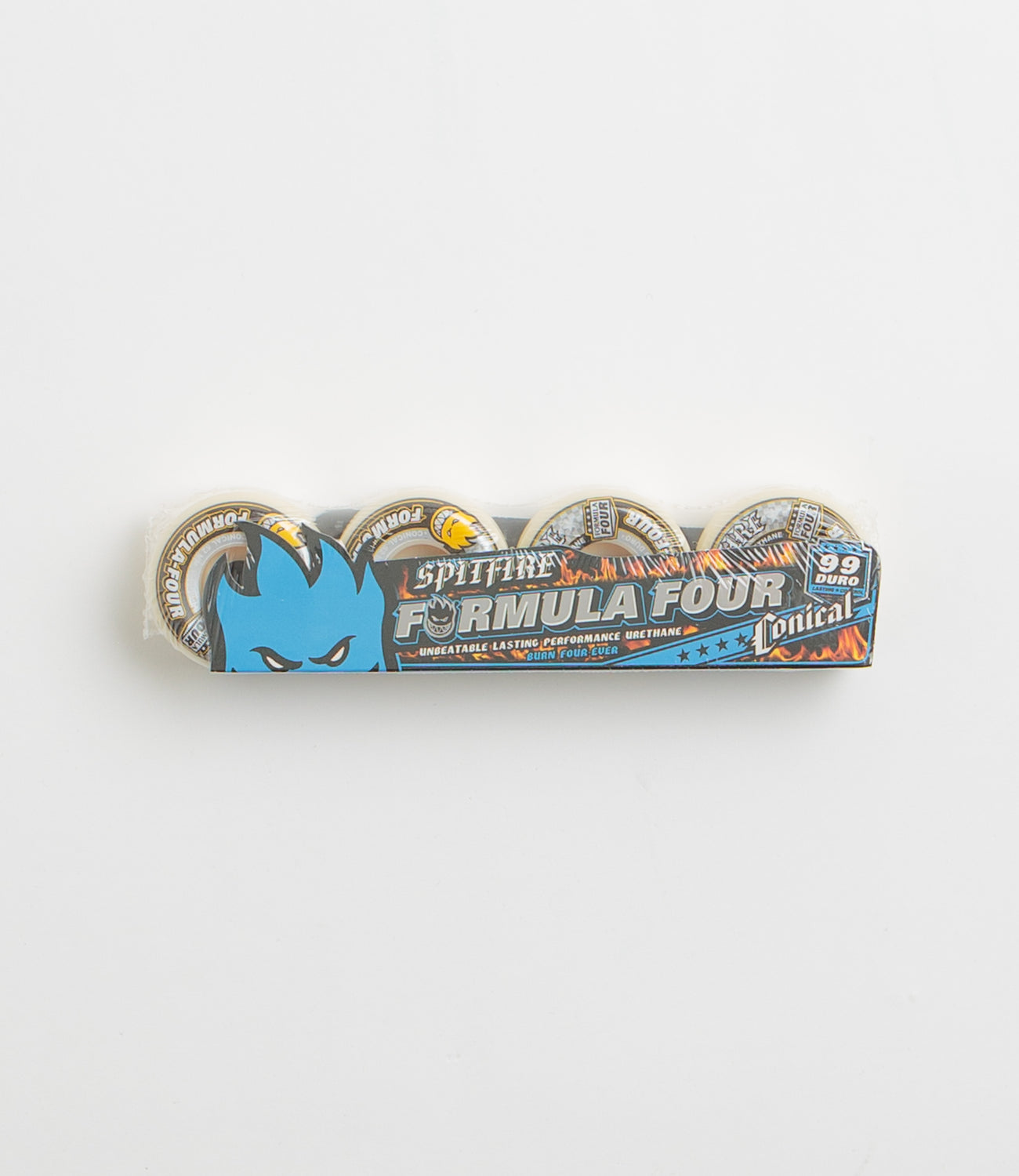 Made from 100% True Performance Urethane, these Spitfire Conical wheels are built for speed, control, and lasting shape. Measuring 52mm in diameter with a 31.3mm width and a 99 durometer, they deliver a smooth, fast roll with just the right amount of grip. The conical profile keeps the weight down while offering a wide riding surface for stability and clean slides. Finished with classic Spitfire detailing - available as a set of four.