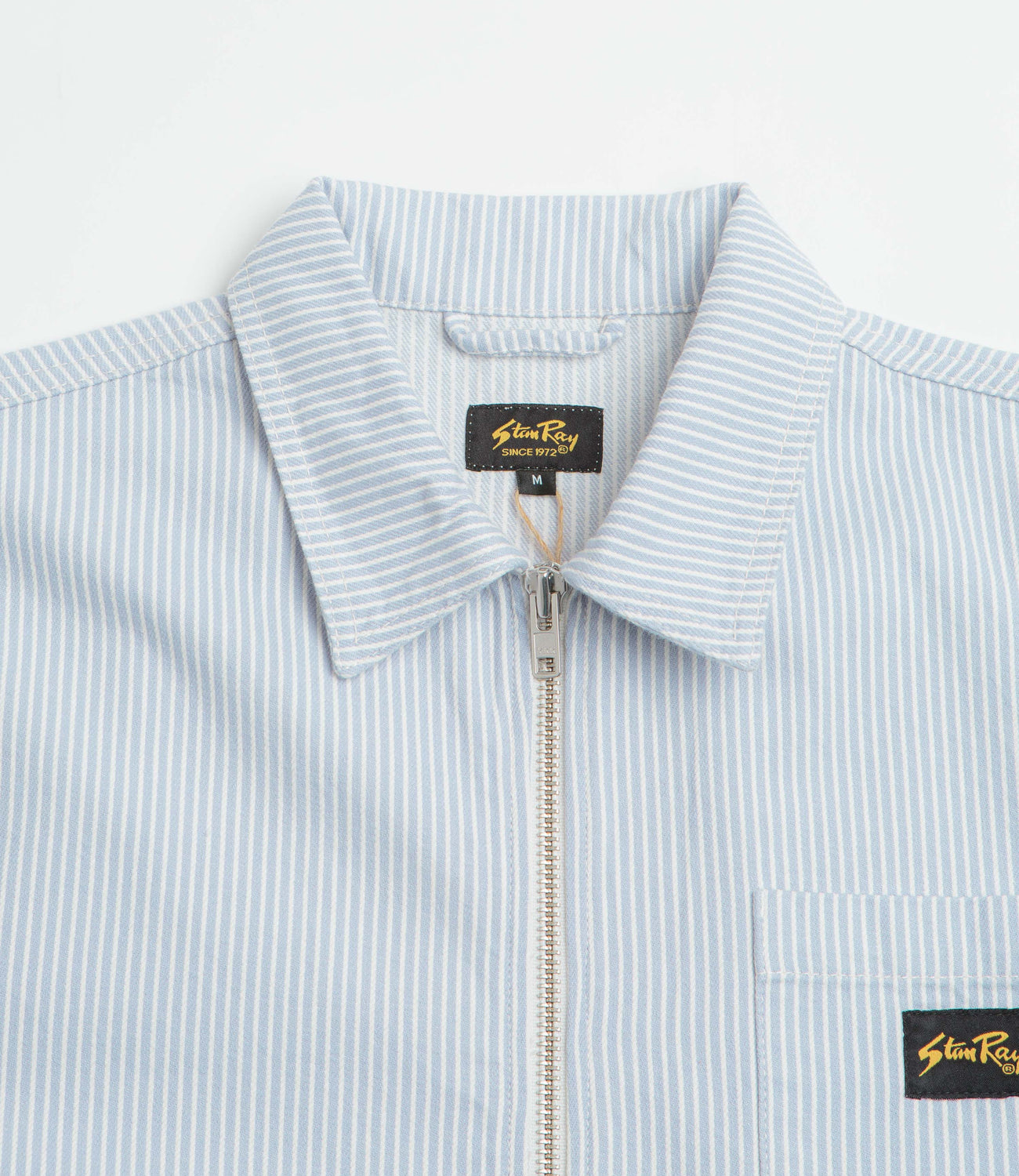 Built to keep up with your day, this Stan Ray zip shirt is crafted from sturdy hickory fabric that’s made to last. The stand collar and full-length zipper make layering simple, while a single chest pocket and set-in front pockets give you space for the essentials. Adjustable cuffs add versatility, and a woven label keeps the details clean. Cut in a regular fit, it’s a dependable piece you’ll throw on again and again - perfect on its own or layered over a tee for practical, everyday wear.