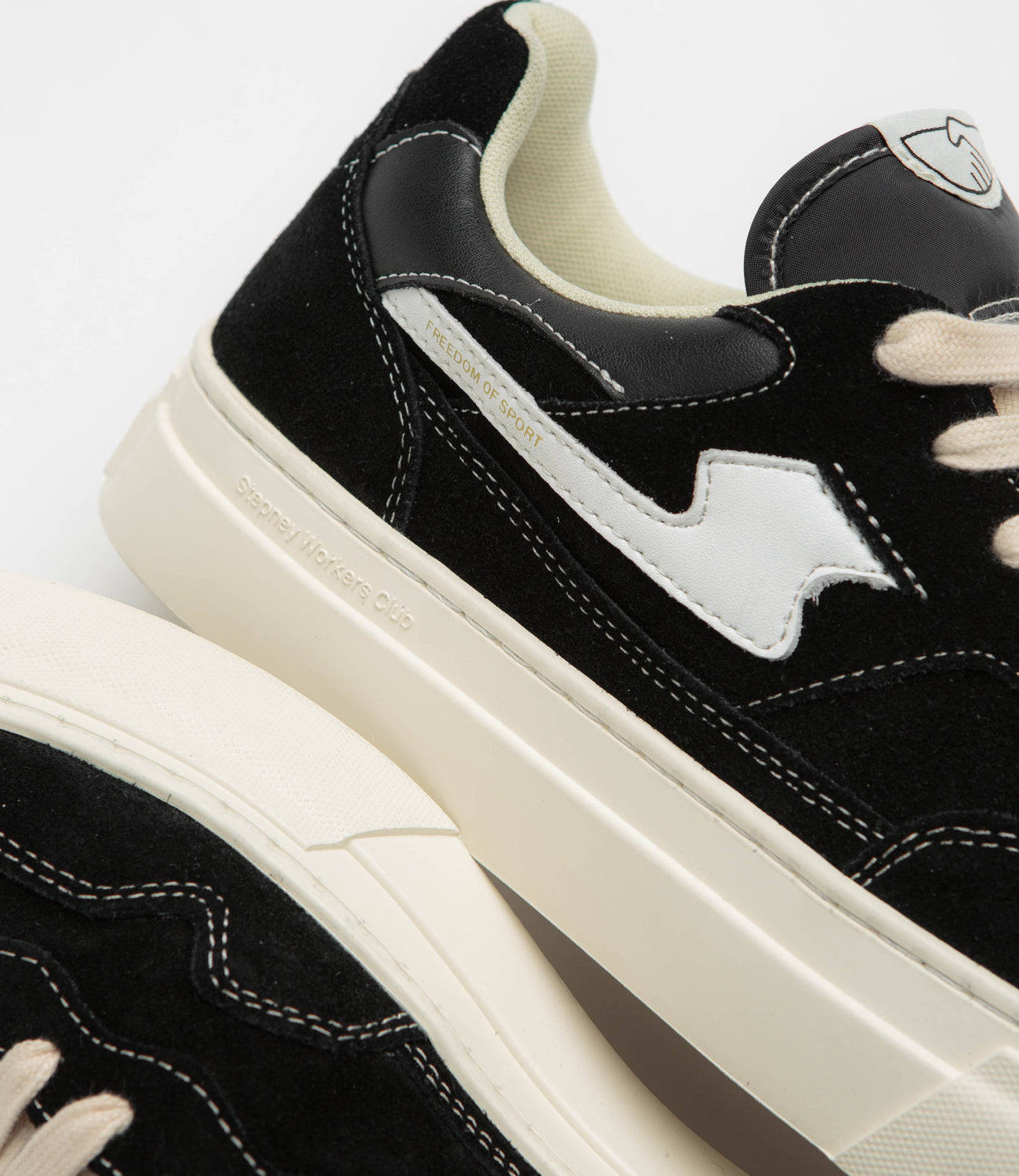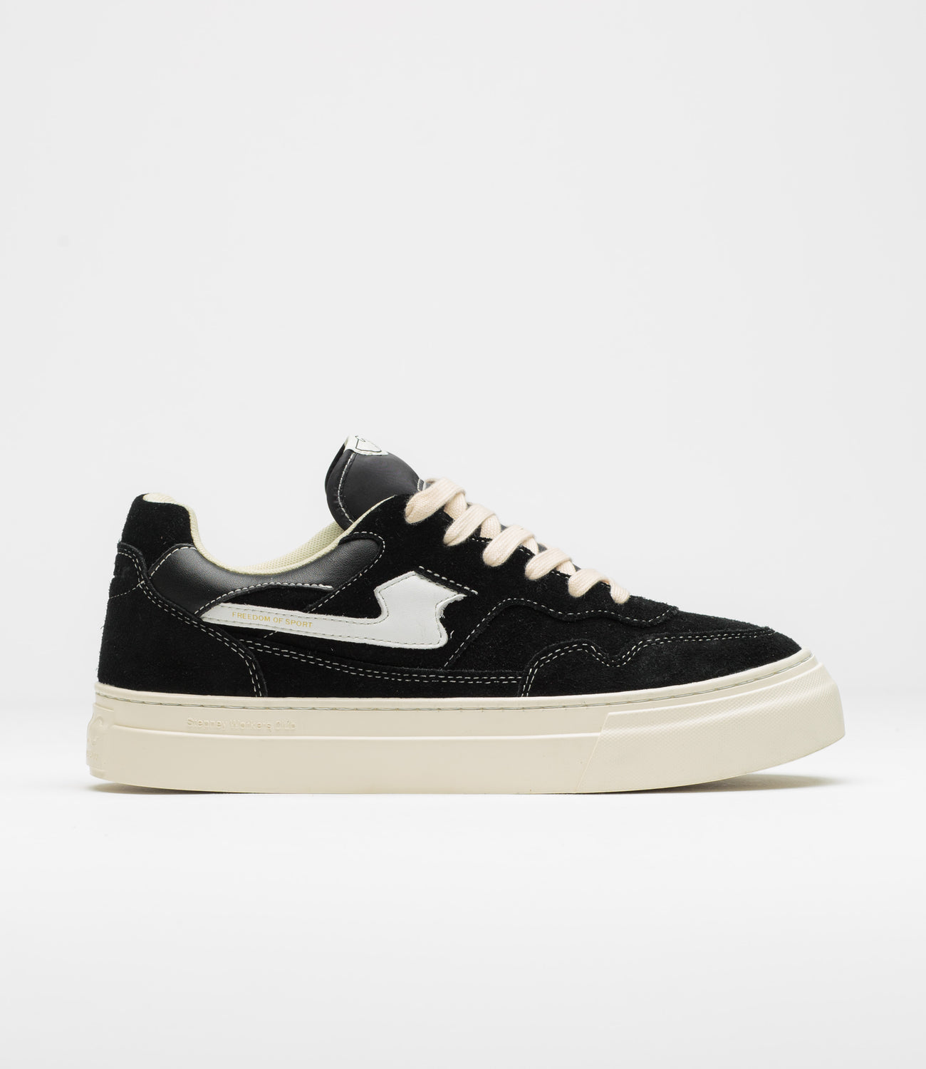 Taking cues from classic court-style shoes, the Stepney Workers Club Pearl S-Strike mixes suede and leather across the upper for a clean, versatile look. Leather side stripes, woven tongue labels, and subtle debossed S-Strike heels nod to the details, while a new sports-cushioned footbed and full-length cupsole keep things solid underfoot. Finished with a concealed siped tread and Freedom of Sport, Freedom of Thought branding.