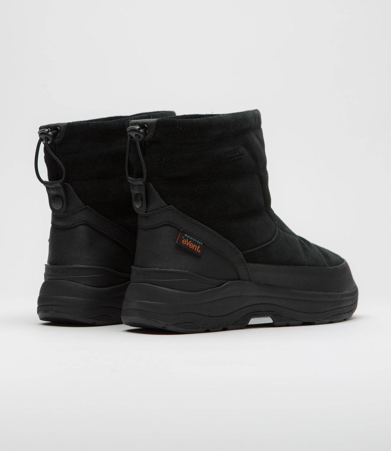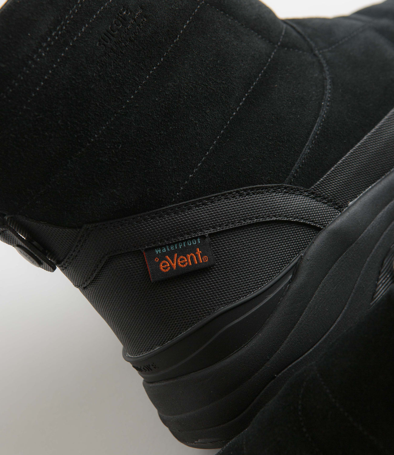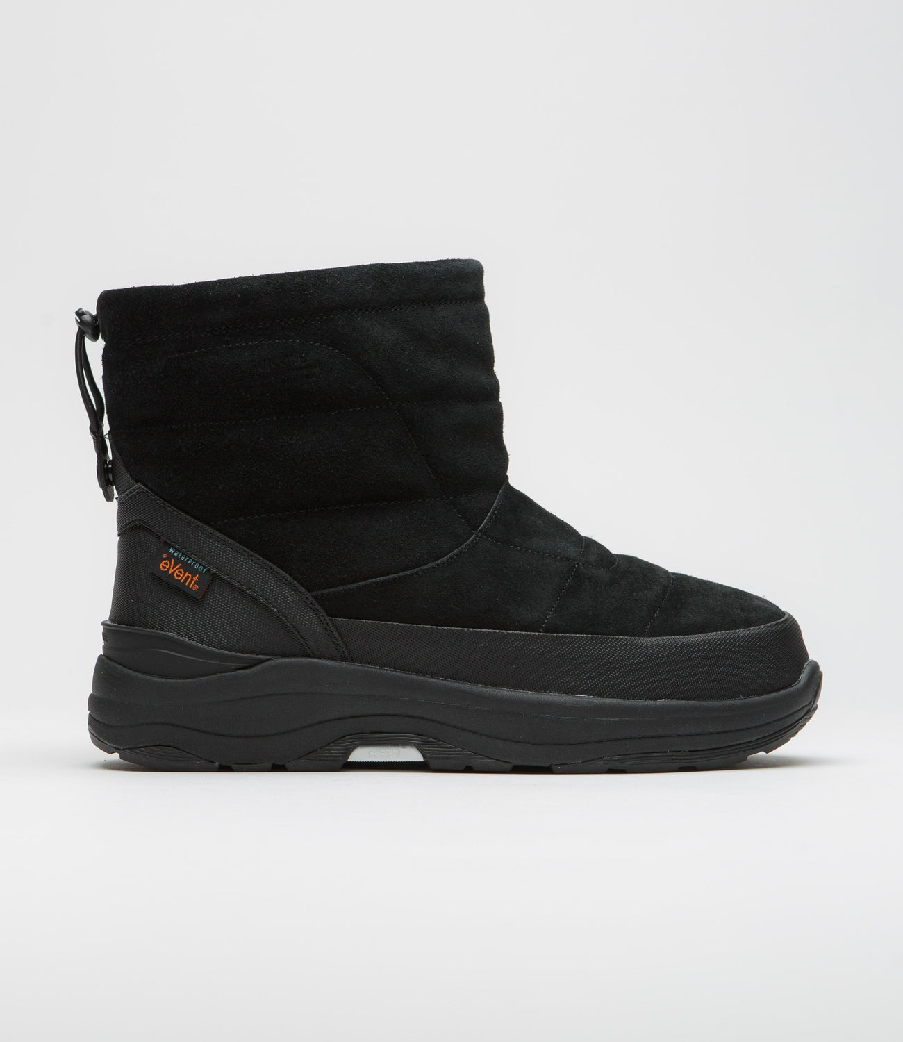 Suicoke Bower Sev Shoes in Black. Designed with both cow leather and artificial leather uppers, this Suicoke Bower Sev also features a waterproof eVent lining and a quilted construction. Featuring built-in 3MTM ThinsulateTM insulation, these black Suicoke boots are finished with a toggle-cord cuff, branded cork insoles and with an original Running outsole.