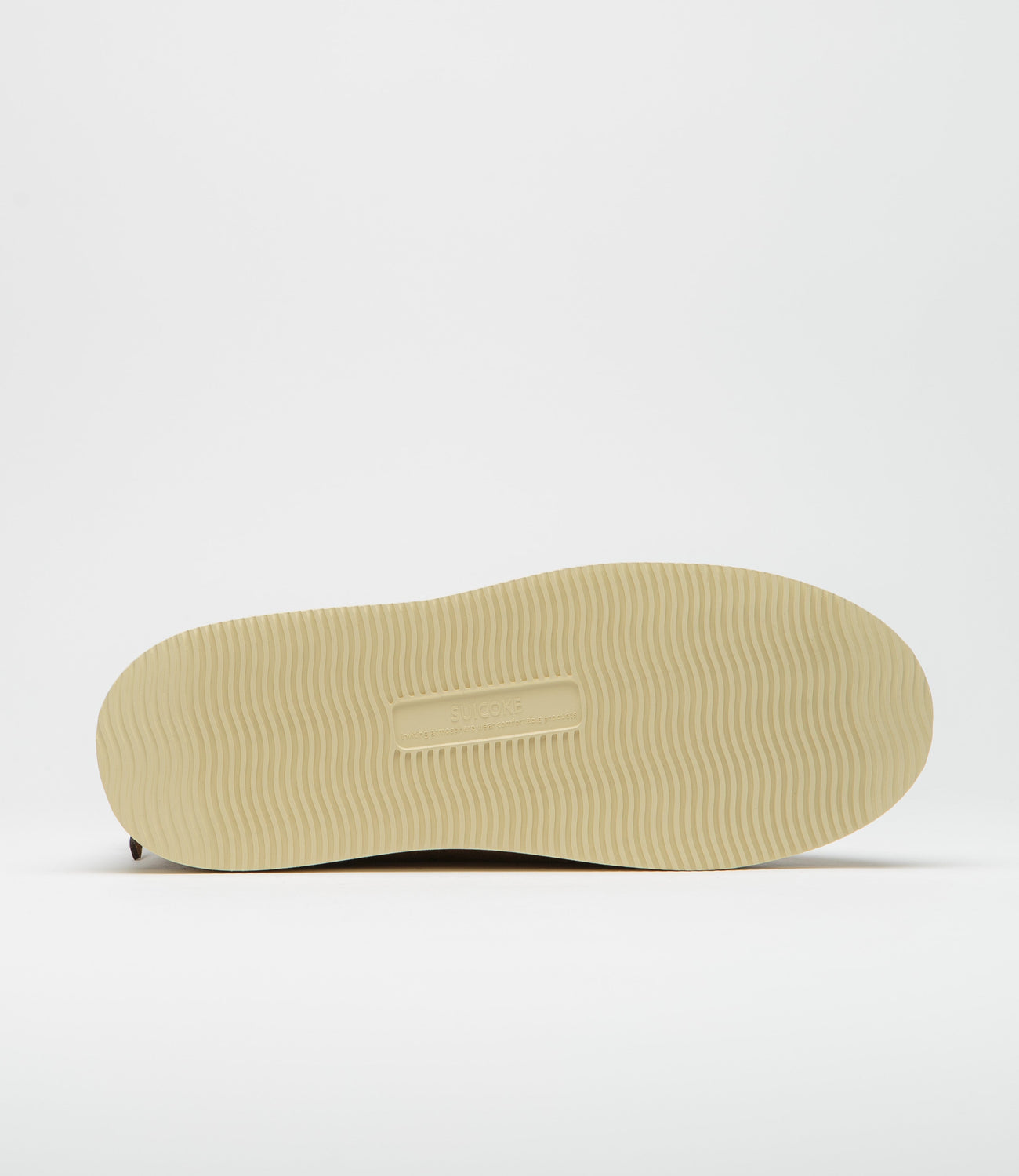 Suicoke ELS M2ab Lo Shoes in Brown. Designed with a soft mouton upper and an insulative moulton lining, this mid-cut Suicoke ELS M2ab boot also features an EVA anti-bacterial footbed. Finished with woven flag label branding and with an original rubber outsole.