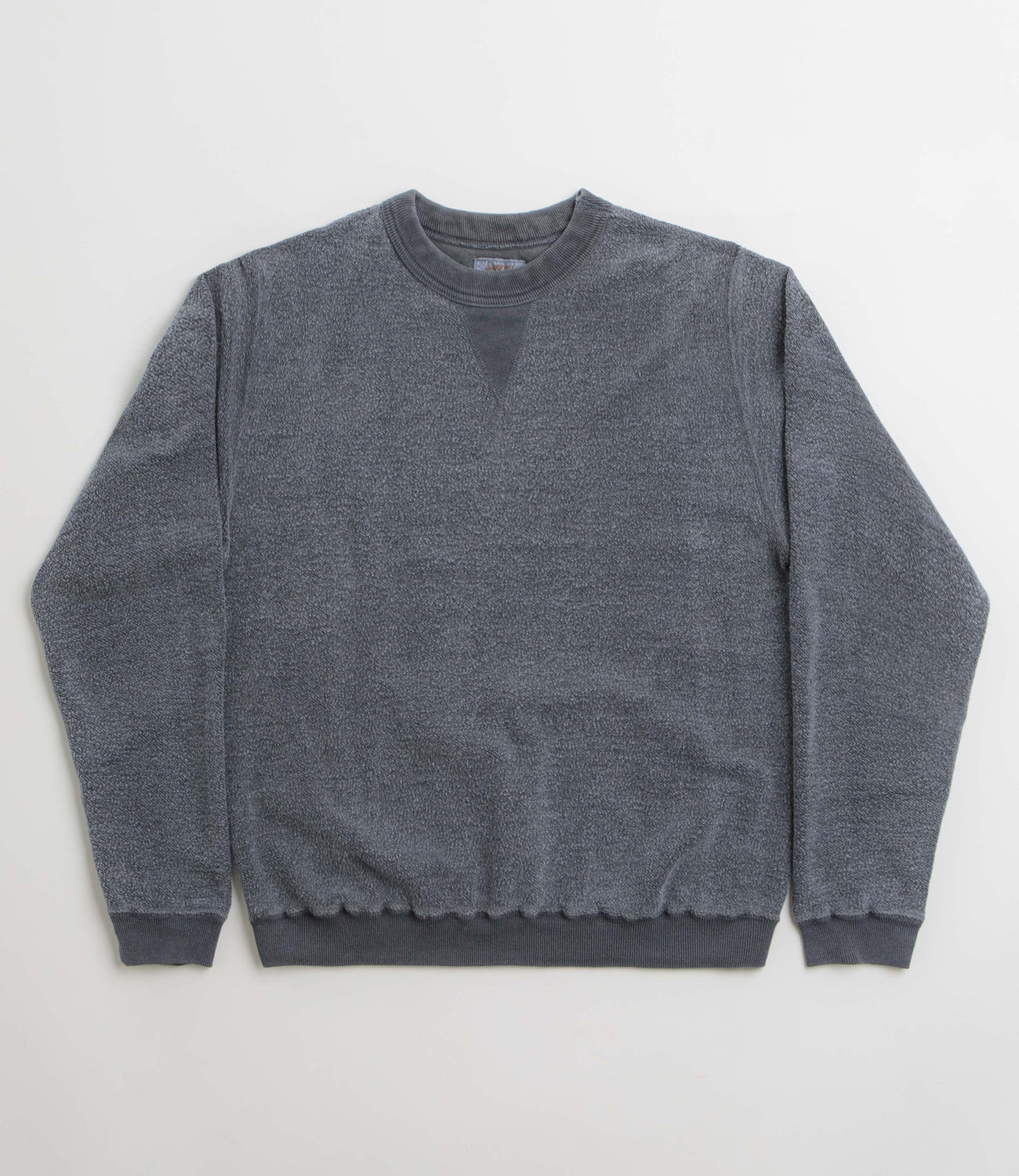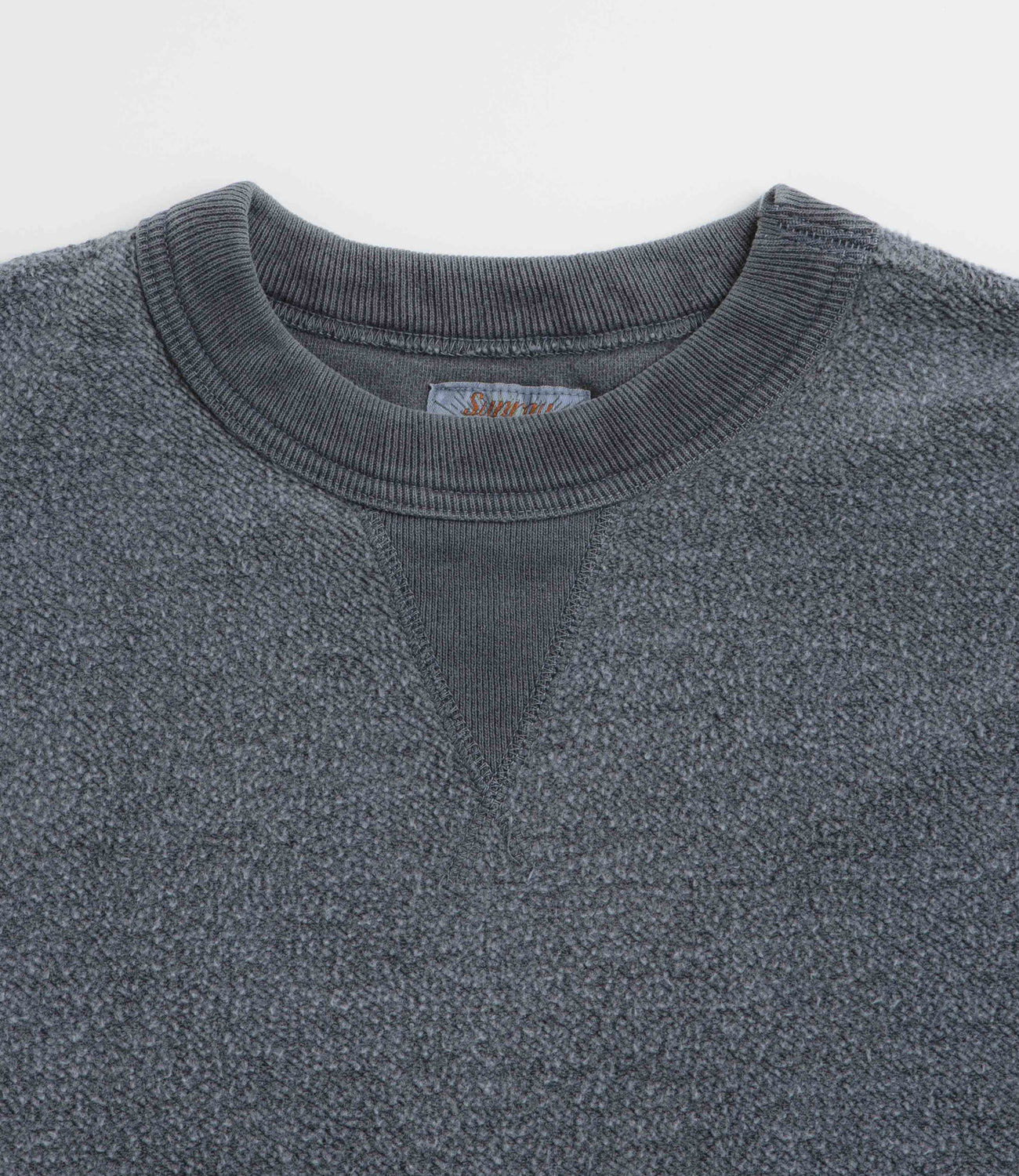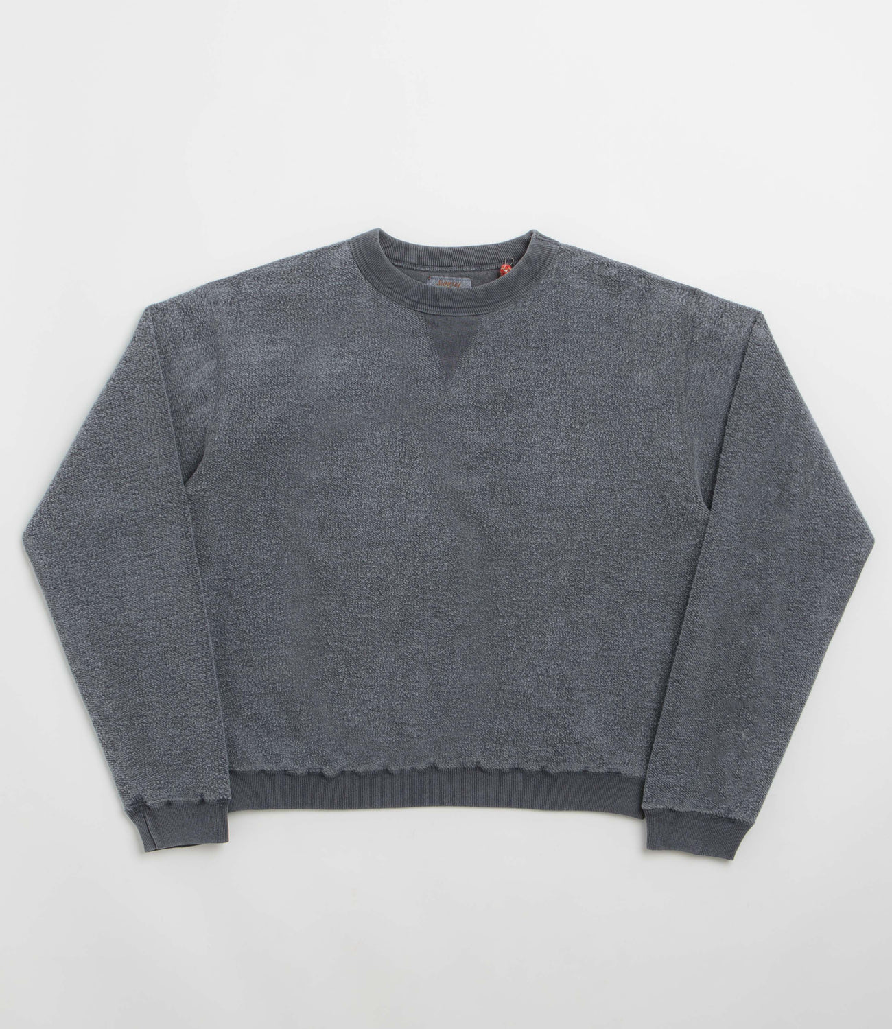 Sunray Spirit Womens Hina Reversed Fleece Crewneck Sweatshirt in Pigment Blue. Crafted from 100% cotton with a cropped length, this Sunray Spirit sweatshirt is designed with a pigment dyed construction. Featuring a V-insert crew collar, this washed blue Sunray Spirit sweater is finished with ribbed cuffs and a boxy fit.