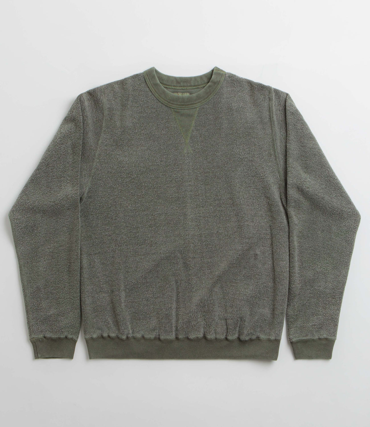 Sunray Spirit Womens Hina Reversed Fleece Crewneck Sweatshirt in Pigment Grape. Boxy fitting and crafted from 100% cotton, this block tone Sunray Spirit sweatshirt is designed with a brushed fleece construction. Featuring a V-insert crew collar and ribbed cuffs, this green Sunray Spirit sweater is finished with a woven elastic hem and a cropped length.