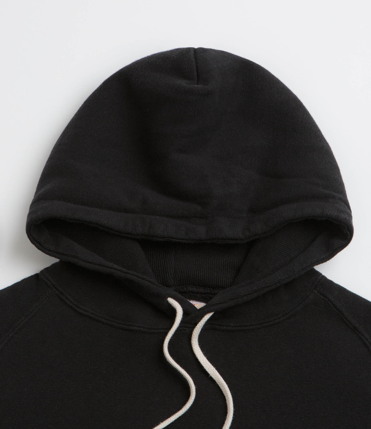 Sunray Sportswear Ehu'kia Hoodie in Anthracite. Tailored to a regular fitting and crafted from 420gsm Japanese French Terry fleece, this Sunray Sportswear hoodie is inspired by traditional sports stylings. Featuring cuffed raglan sleeves, a thick rib woven elastic hemline and a rib-lined drawstring hood, this Sunray hoodie also features tonal stitched seams throughout. Finished with a classic kangaroo front pocket with a concealed inner phone pouch for increased storage.