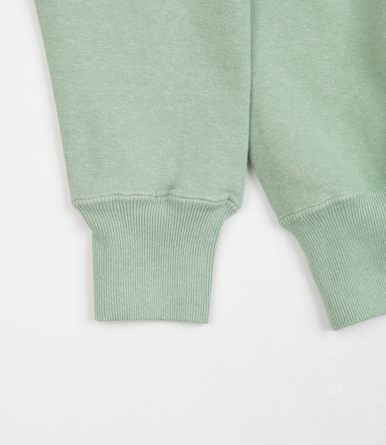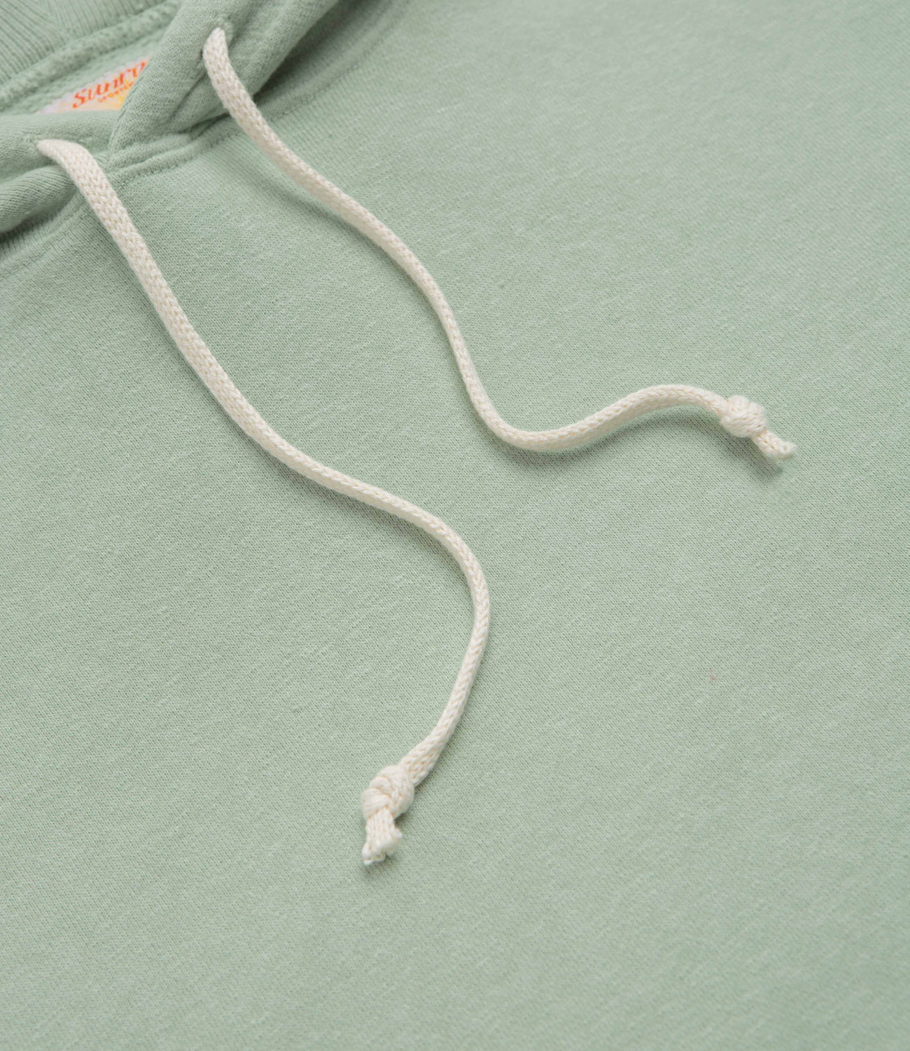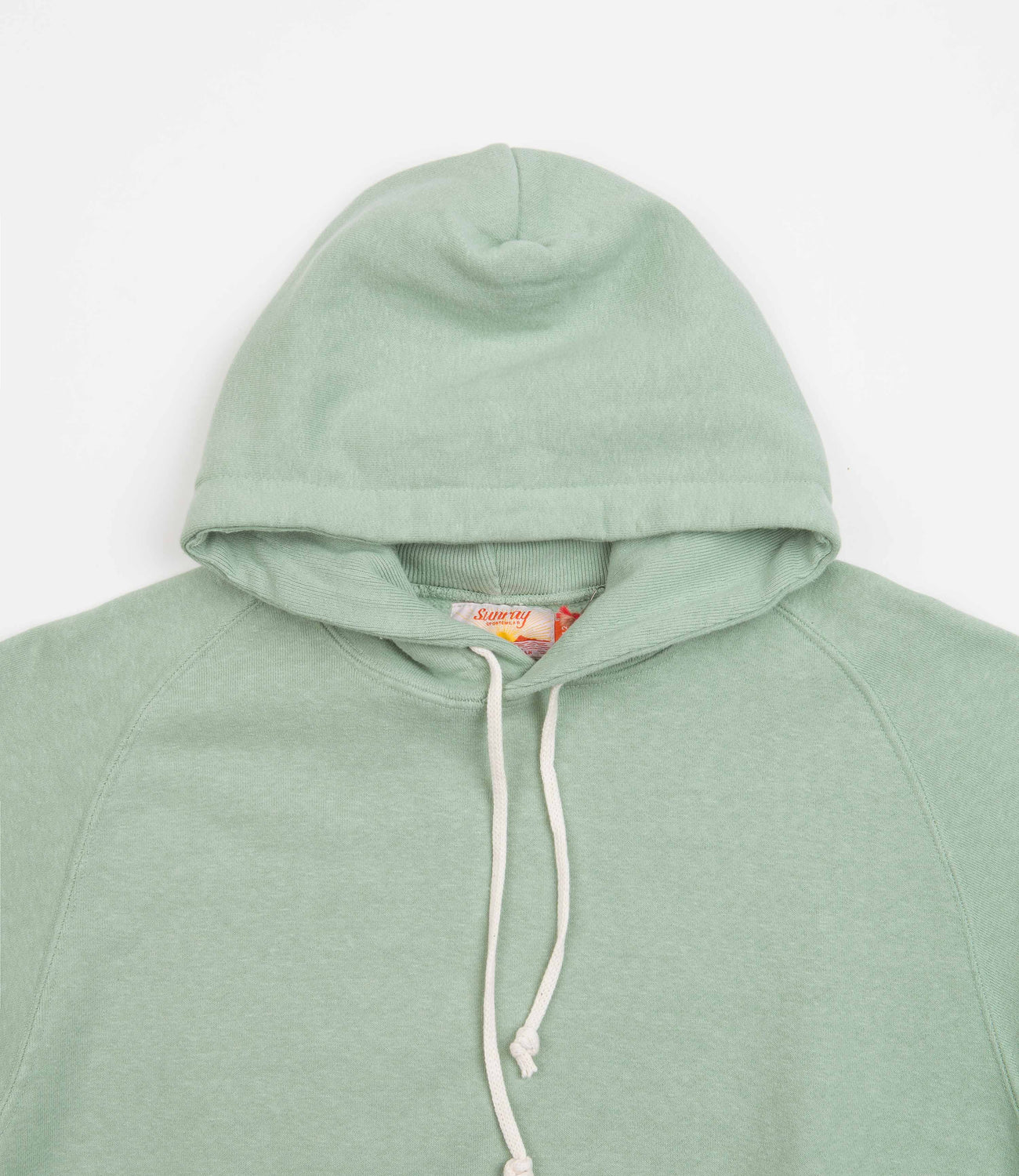 Sunray Sportswear Ehu'kia Hoodie in Sage. Arriving as part of the brand’s Autumn Winter ‘22 collection, this colour block Sunray Sportswear hoodie is tailored to a regular fitting from 100% Japanese French Terry fleece. Inspired by classic sport stylings, this sage green Sunray hoodie features cuffed raglan sleeves, a rib knit hemline and a rib-lined drawstring hood. Finished with tonal stitched seams, a dual entry kangaroo pocket and with a concealed inner phone pocket for increased storage.