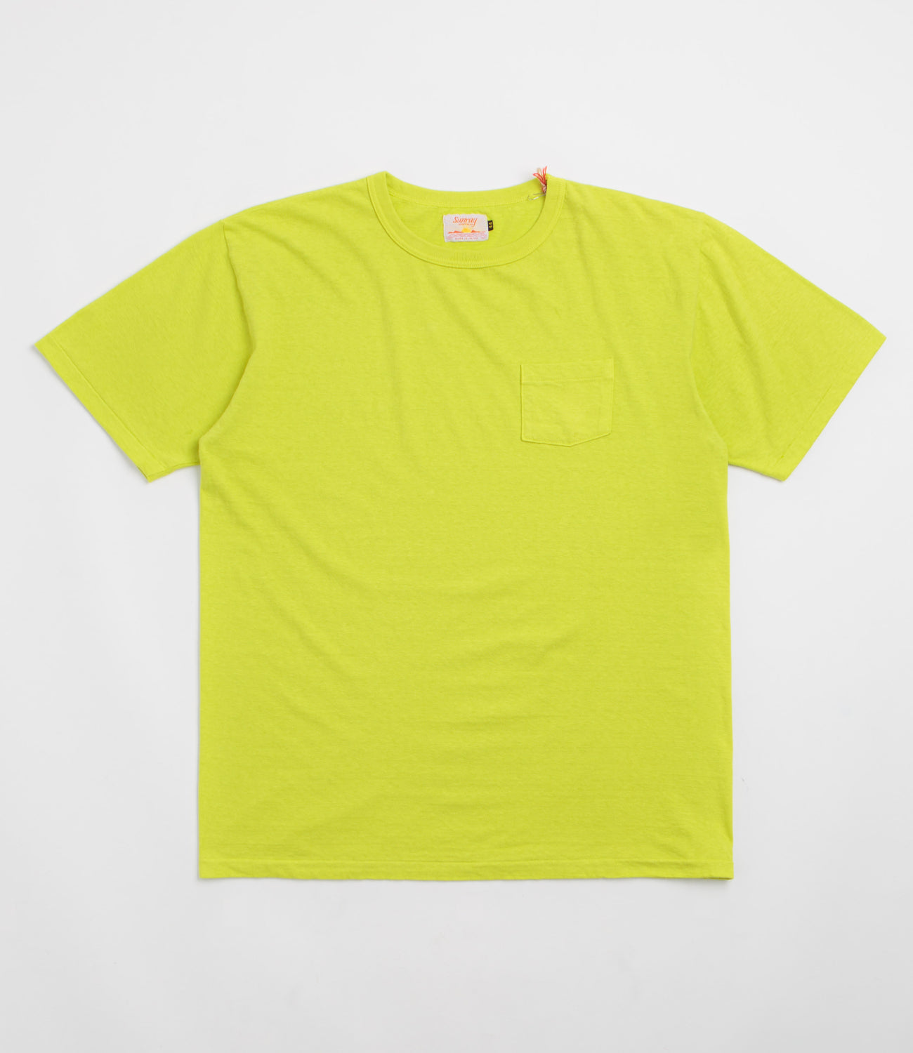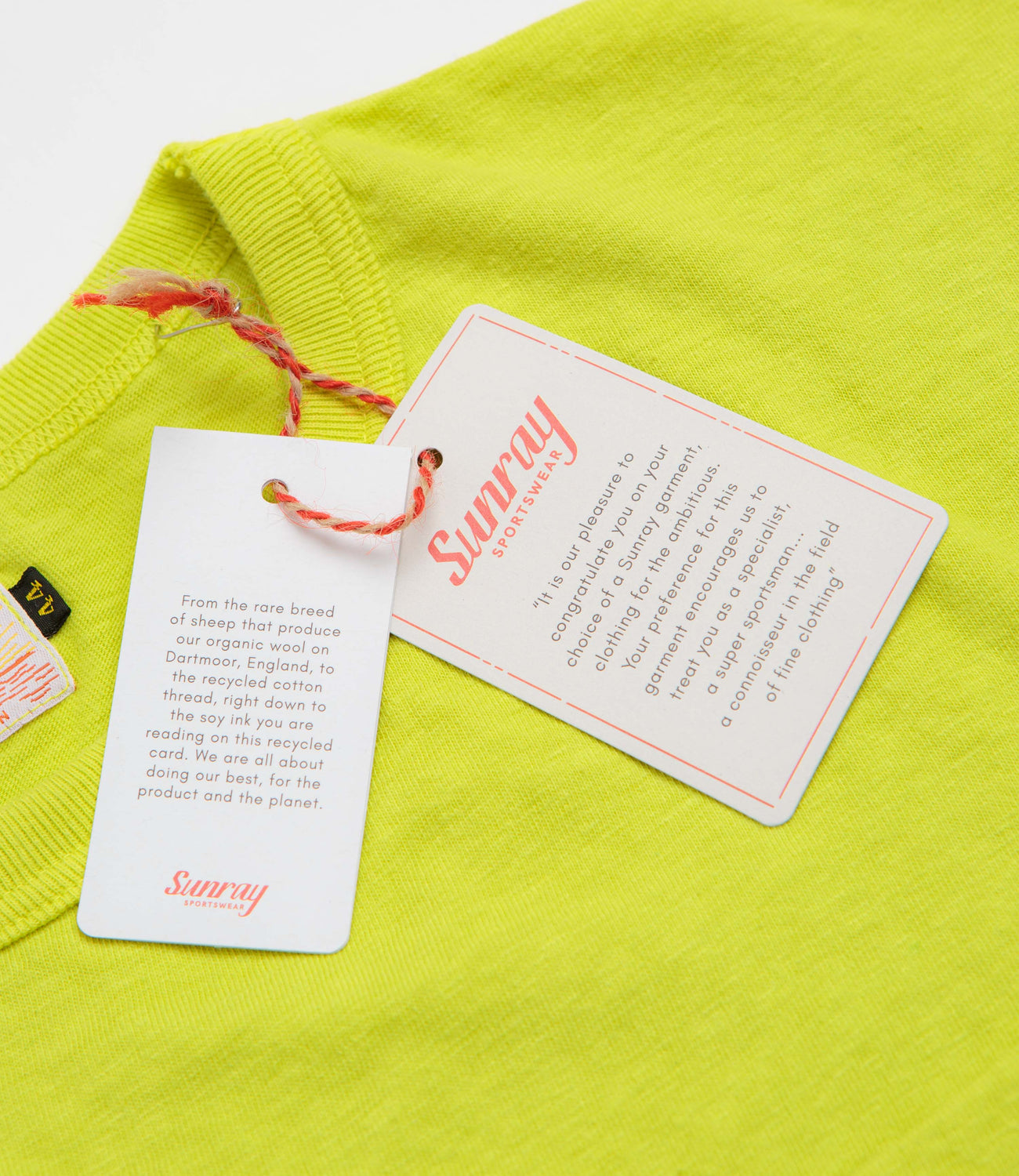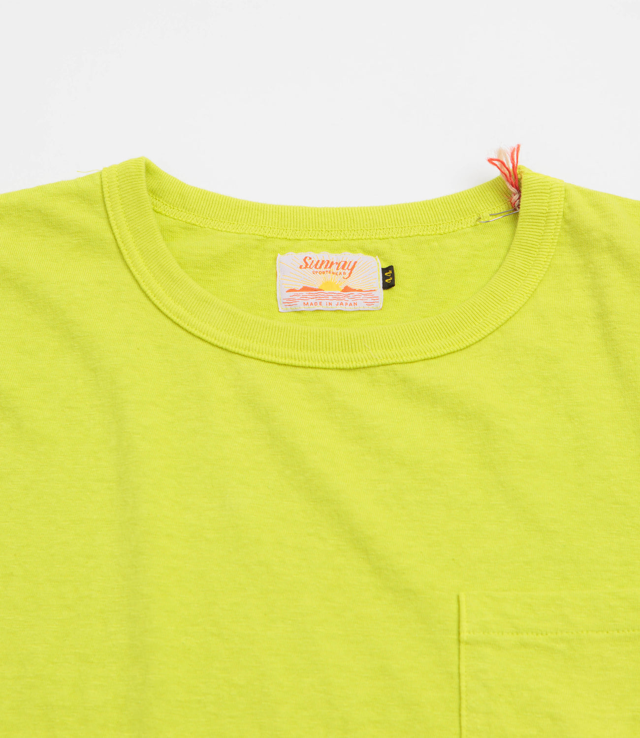 Sunray Hanalei T-Shirt in Macaw Green. Made in Japan from 100% recycled cotton, this heavyweight Sunray t-shirt arrives as part of the brand’s latest seasonal release. Tailored to a regular fitting in a striking shade of lime green, this eye catching silhouette features a flexible rib knit collar, a reinforced hemline and tonal supportive stitchings across its streamlined design. A single patch style pocket can be found across the left chest, offering ample storage space to suit, whilst a classic ‘Sunray Sportswear’ flag label can be found across the inner neckline for a refined sign off that honours the brand’s appreciation for less-means-more aesthetics.