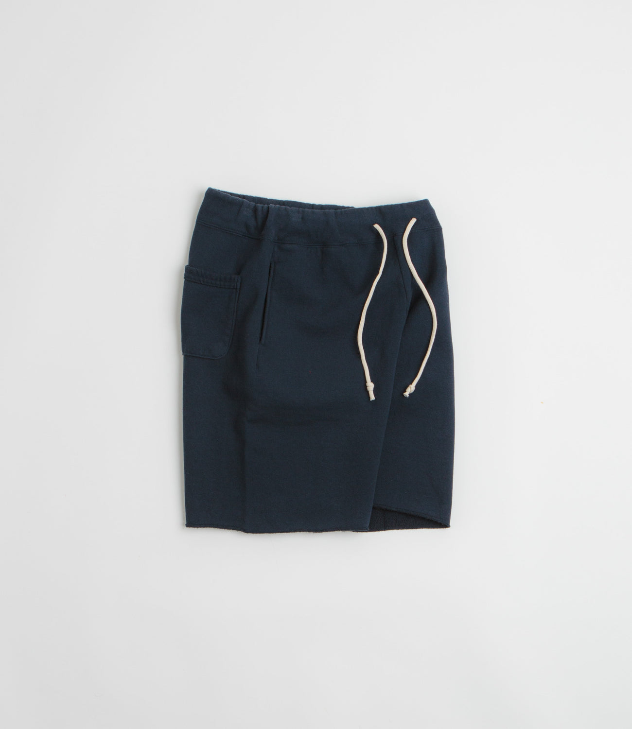 Sunray Sportswear Kiahuna Sweat Shorts in Dark Navy. Cut to knee length with a raw hem edge, these Sunray Sportswear shorts are crafted from 100% cotton fleece. Featuring an elasticated drawstring waistband, these navy Sunray Sportswear shorts are finished with two side pockets, a single rear pocket and an 18” length.