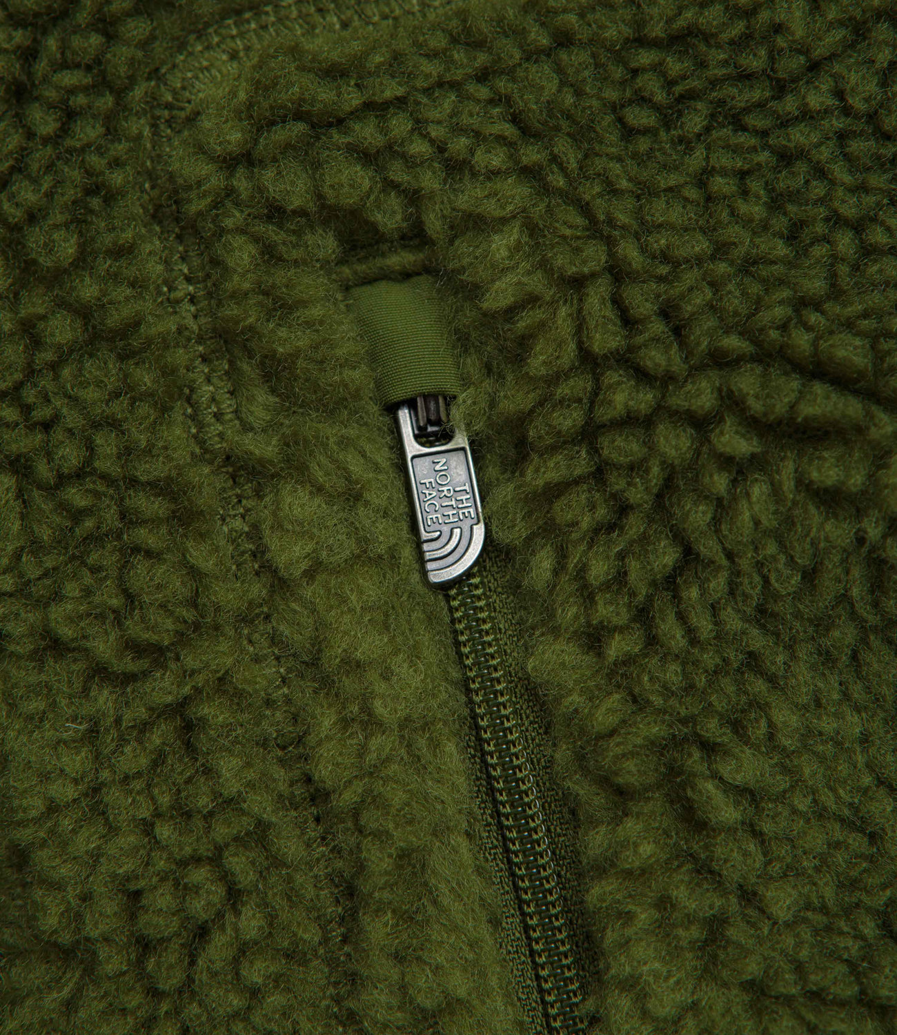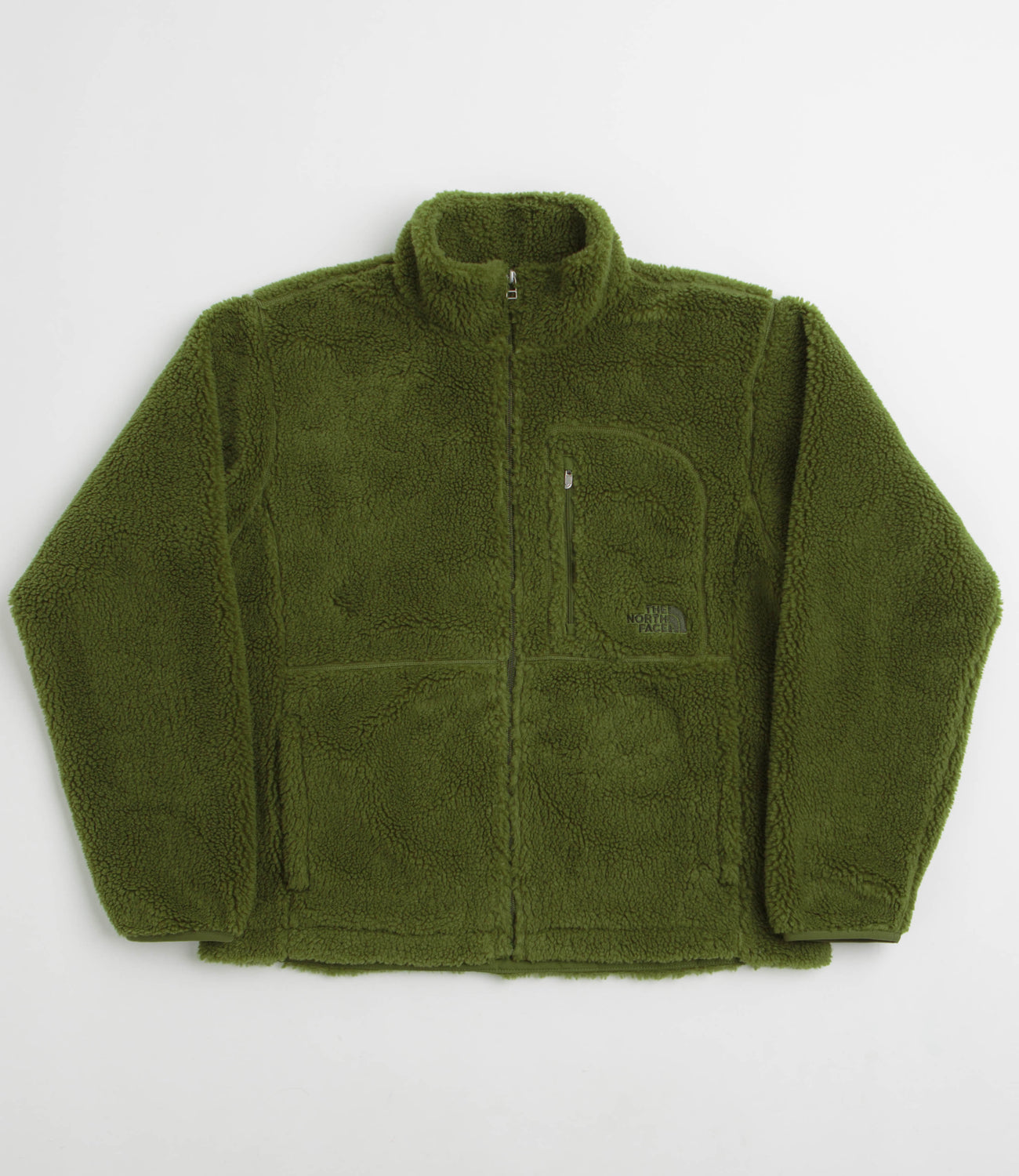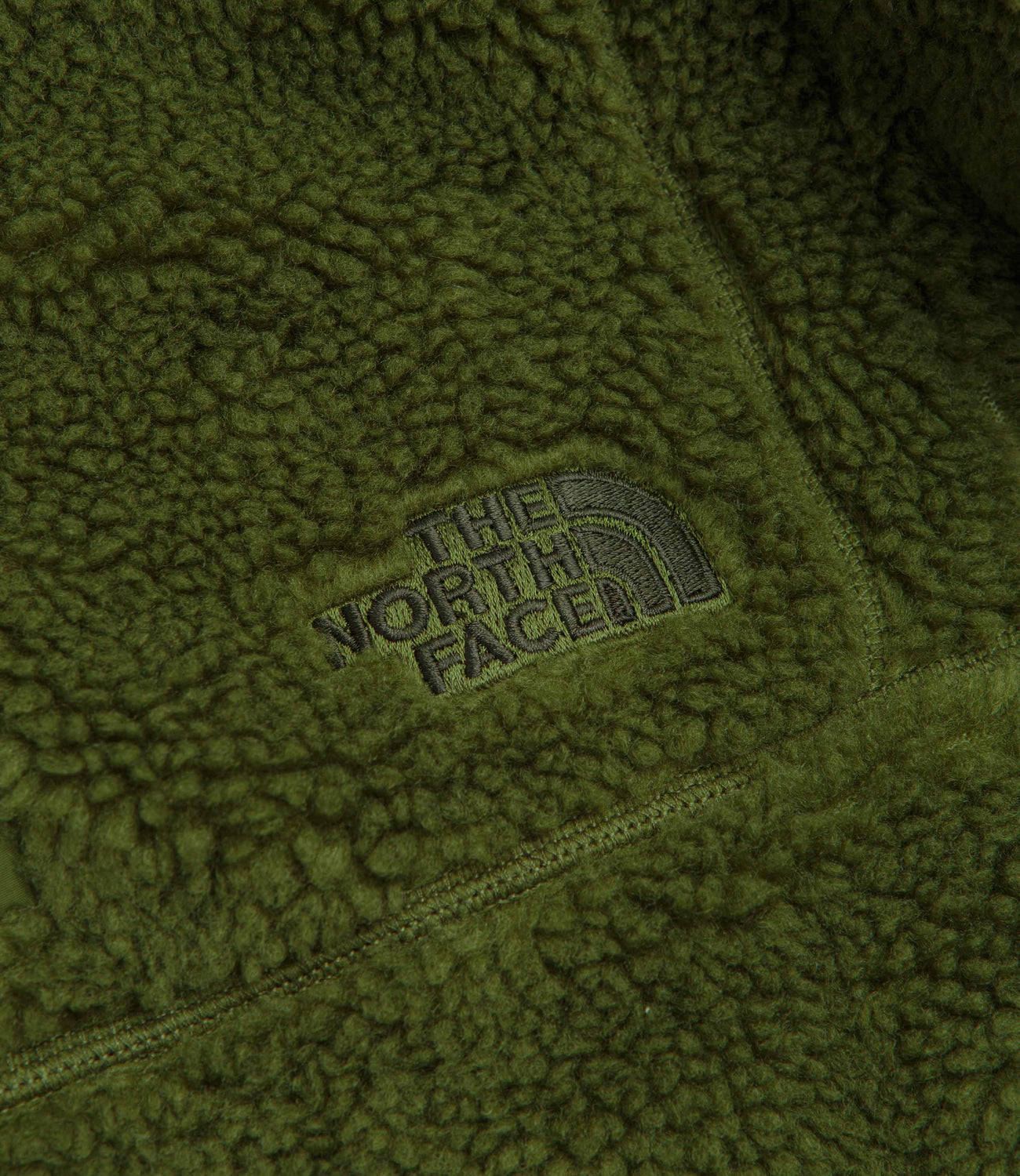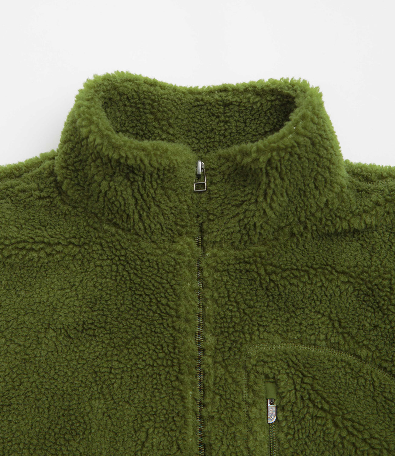 The North Face Extreme Pile 2 Full Zip Jacket in Woodland Green. Regular fitting, this block tone The North Face jacket is made from a recycled polyester fleece blend. Featuring a stand collar, a full length zipper fastening, elasticated cuffs and a zippered chest pocket, this green The North Face jacket is finished with two additional waist pockets and embroidered branding.