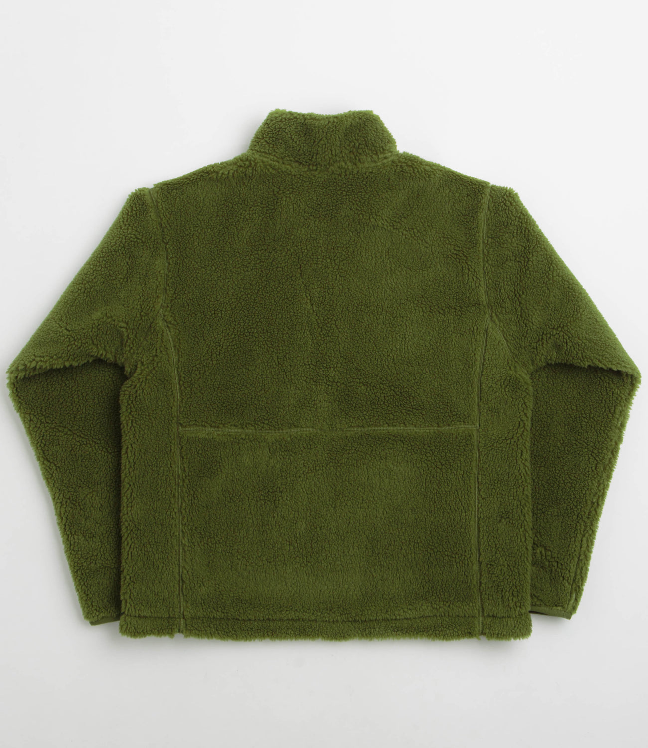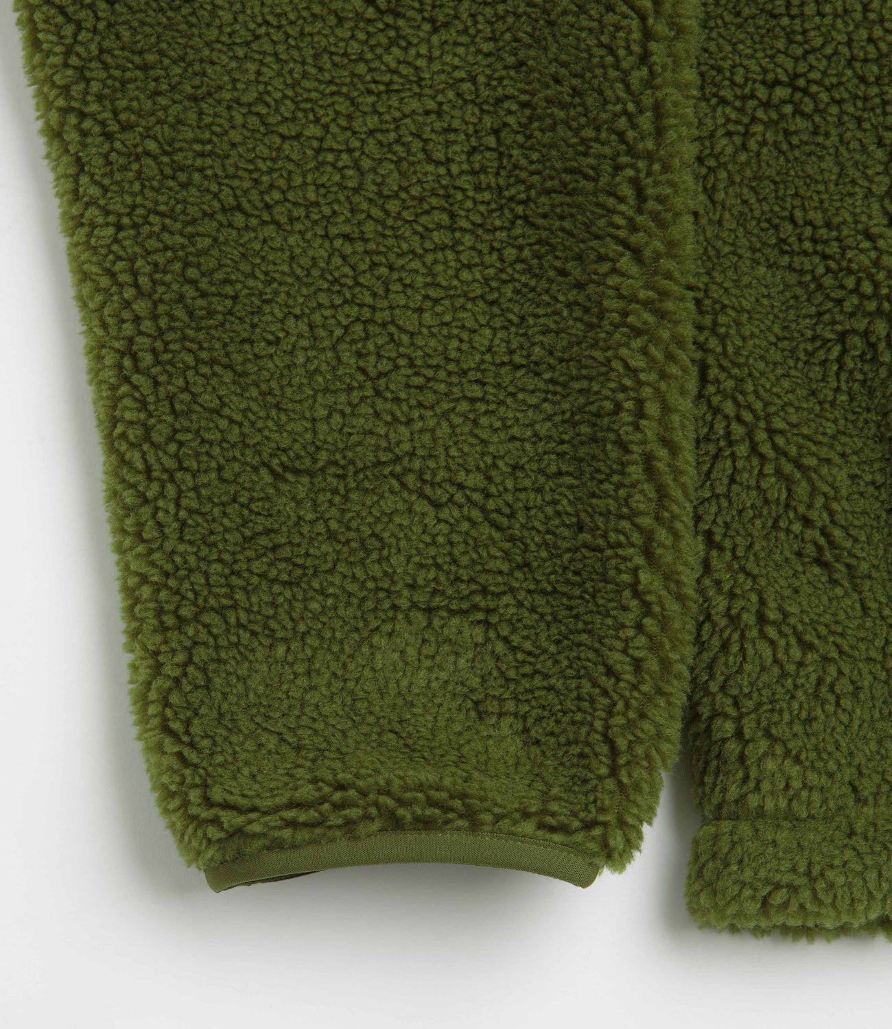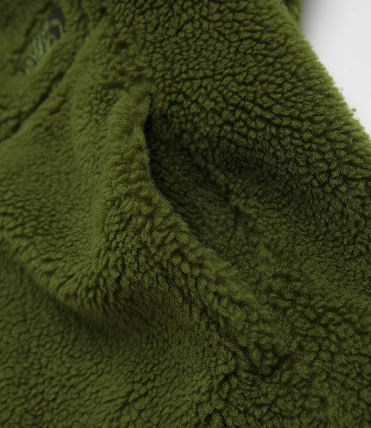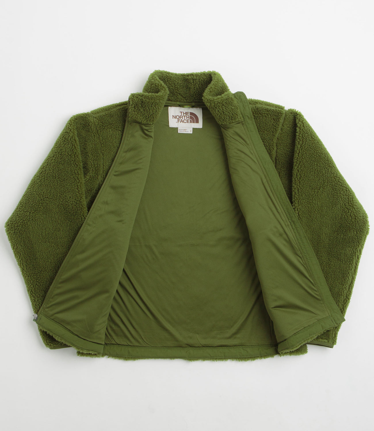 The North Face Extreme Pile 2 Full Zip Jacket in Woodland Green. Regular fitting, this block tone The North Face jacket is made from a recycled polyester fleece blend. Featuring a stand collar, a full length zipper fastening, elasticated cuffs and a zippered chest pocket, this green The North Face jacket is finished with two additional waist pockets and embroidered branding.