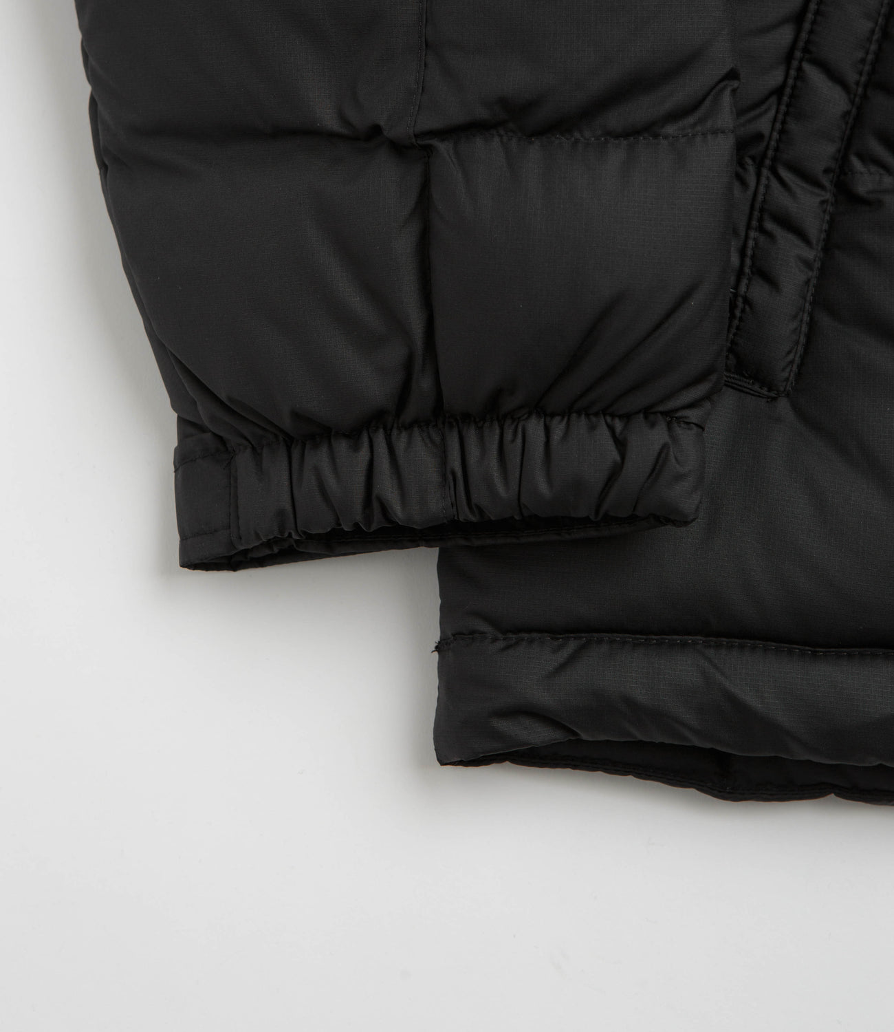 The North Face Lhotse Jacket in TNF Black. Made from 100% polyester ripstop with 700-fill goose down insulation, this padded The North Face jacket is designed with a full length zipper fastening and zippered front pockets. Finished in black with embroidered logos, adjustable cuffs and a concealed hem adjuster.