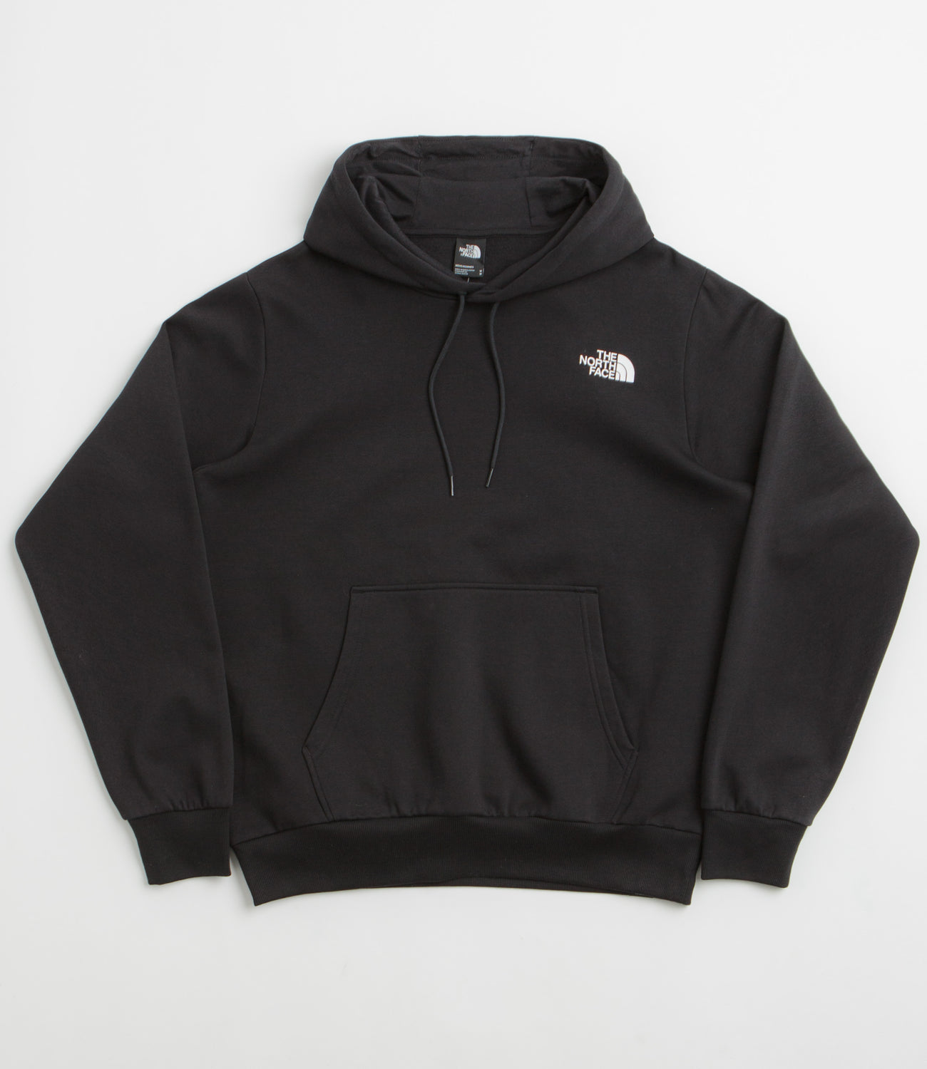 The North Face Simple Dome Hoodie. Made from a cotton-polyester blend with a brushed fleece inner, this regular fitting The North Face hoodie is designed with an adjustable drawcord hood. Finished in black with a kangaroo front pocket, ribbed cuffs, a woven elastic hem and printed logos.