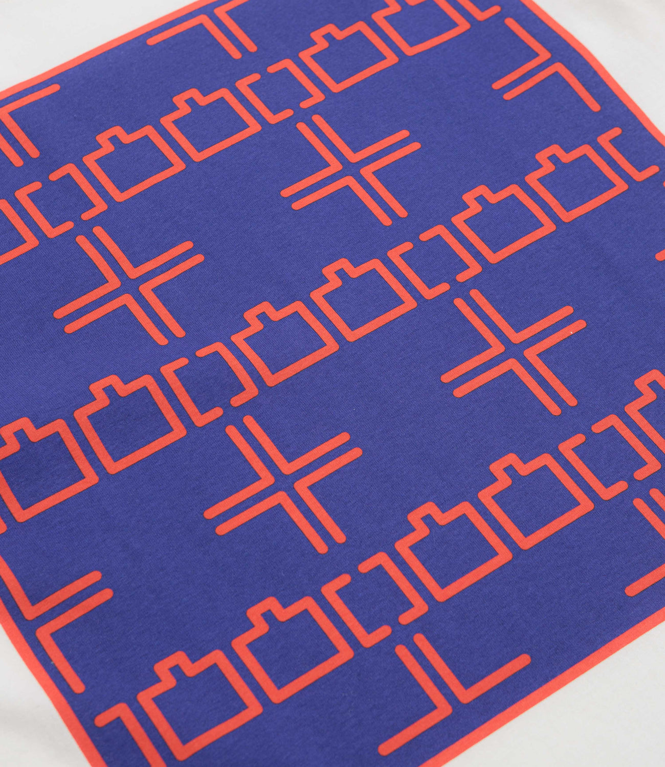 The Trilogy Tapes Dashed Line T-Shirt in White. Regular fitting, this Trilogy Tapes t-shirt is designed with a rib knit collar and a straight cut hem. Finished in white with a printed centre chest graphic.