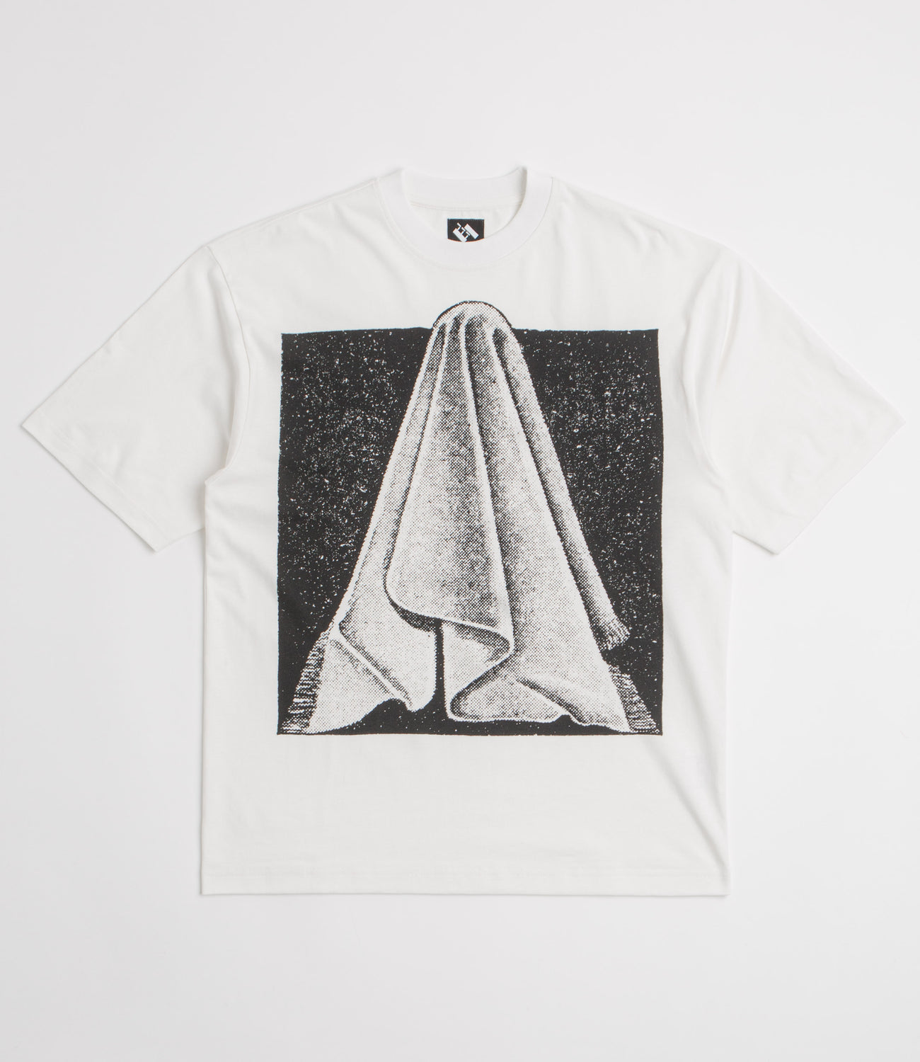 The Trilogy Tapes Drapery T-Shirt in White. Regular fitting and made from 100% cotton, this Trilogy Tapes t-shirt is designed with a rib knit collar and a straight hem. Finished in white with a printed centre chest graphic.