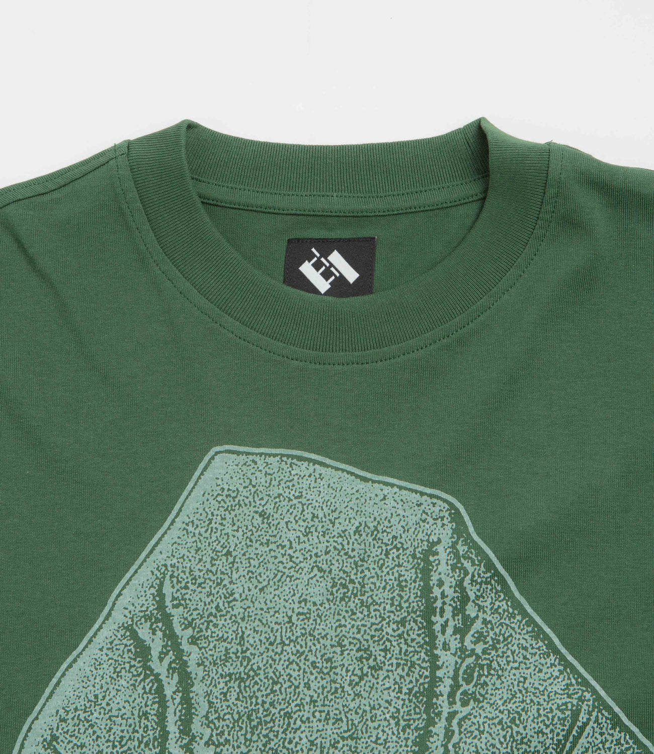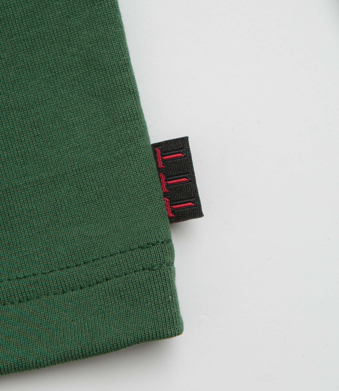 A go-to green tee from Trilogy Tapes. Made from 100% cotton in a regular fit, featuring ribbed collar and cuffs, flag label, and a printed centre chest graphic - simple, clean, and easy to throw on.