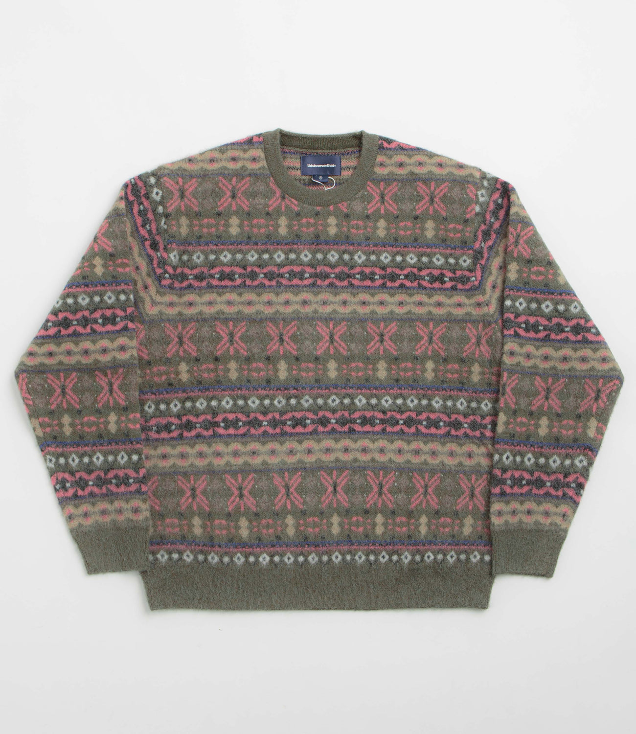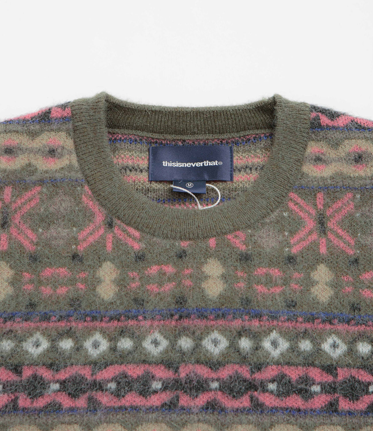 Knitted with an all-over Fair Isle pattern, this khaki green sweater brings a classic look with an easy, everyday feel. Finished with a rib knit collar, cuffs, and hem for a clean shape, the regular fit keeps it comfortable whether layered or worn on its own.