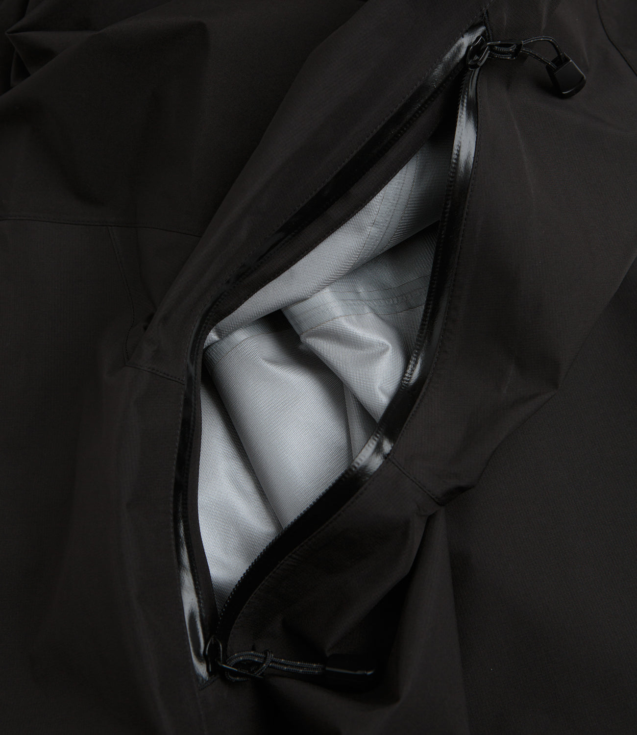 Made to move with you, this black Gore-Tex jacket is built from a 3-layer shell for full protection without the bulk. Seam-sealed and waterproof yet breathable, it’s the layer you’ll reach for when the weather turns. The packable drawcord hood, zippered side vent, and adjustable cuffs and hem let you fine-tune comfort, while zippered pockets keep essentials close. Finished with subtle branding, it’s a jacket built to keep you out there - rain, wind, or whatever the day brings.