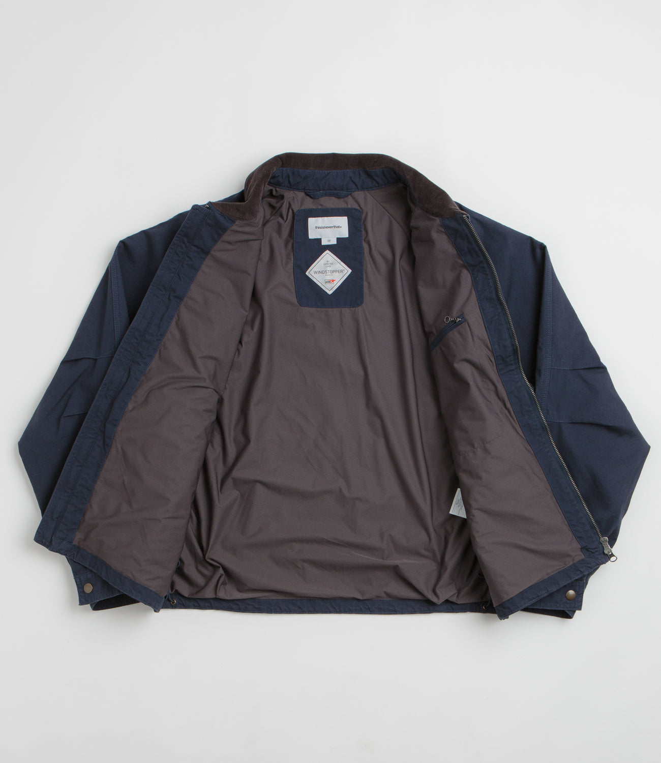 Built for the colder days and everything that comes with them, this navy jacket blends everyday function with refined detail. The cotton outer and GORE-TEX Windstopper® lining keep you warm and protected from the elements, while the contrasting corduroy collar adds a classic touch. Raglan sleeves and an adjustable drawcord hem make layering easy, with a two-way zip and snap cuffs for a fit that moves with you. Finished with front pockets and a woven label - it’s ready for city days, weekend walks, and everything in between.