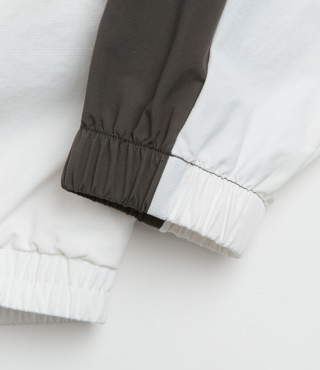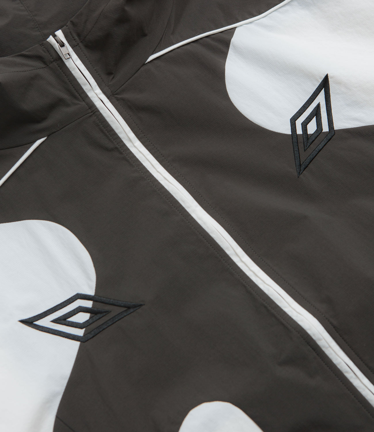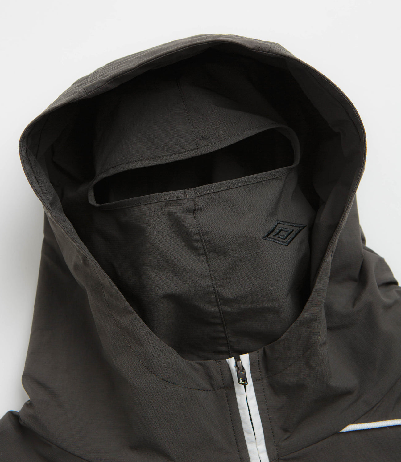 Built for movement and coverage, this track jacket blends contrast panelling with a built-in mask and piped seams for a bold, sporty look. Full-length zipper, elasticated cuffs and hem, and two front pockets make it practical on the move, while embroidered logos add a clean finish.