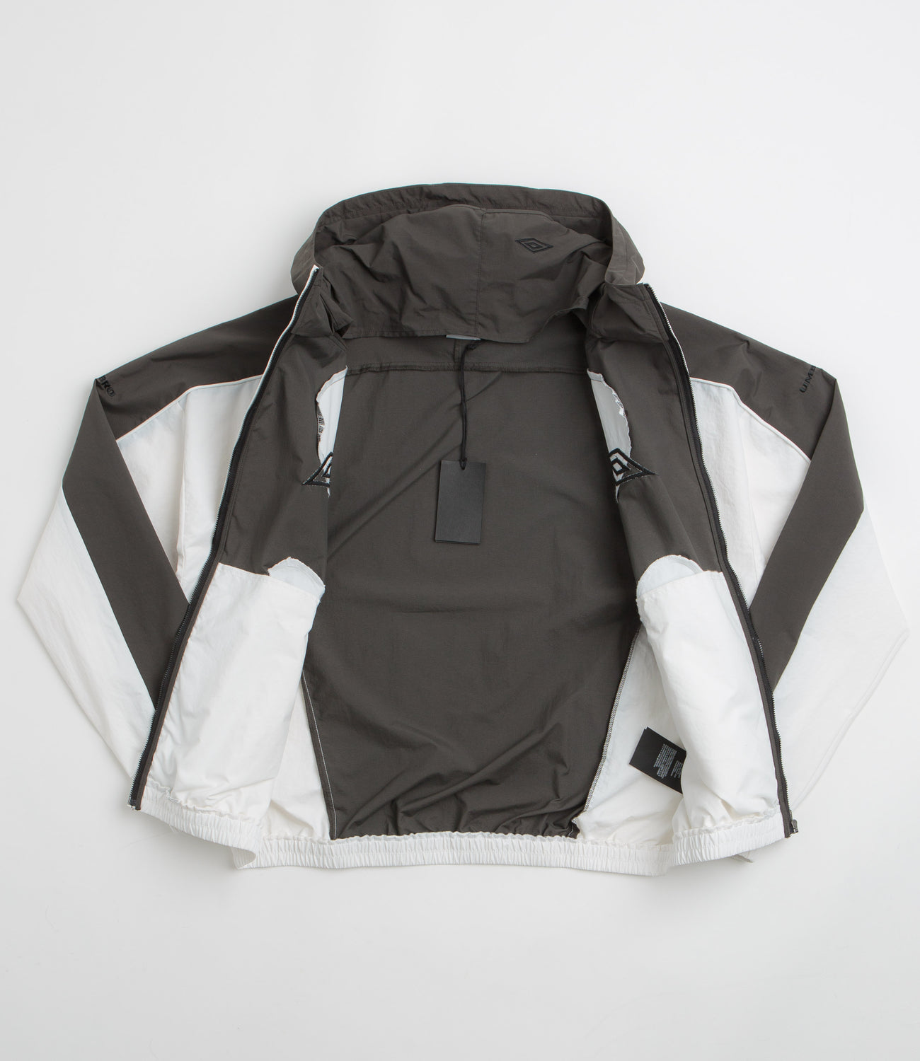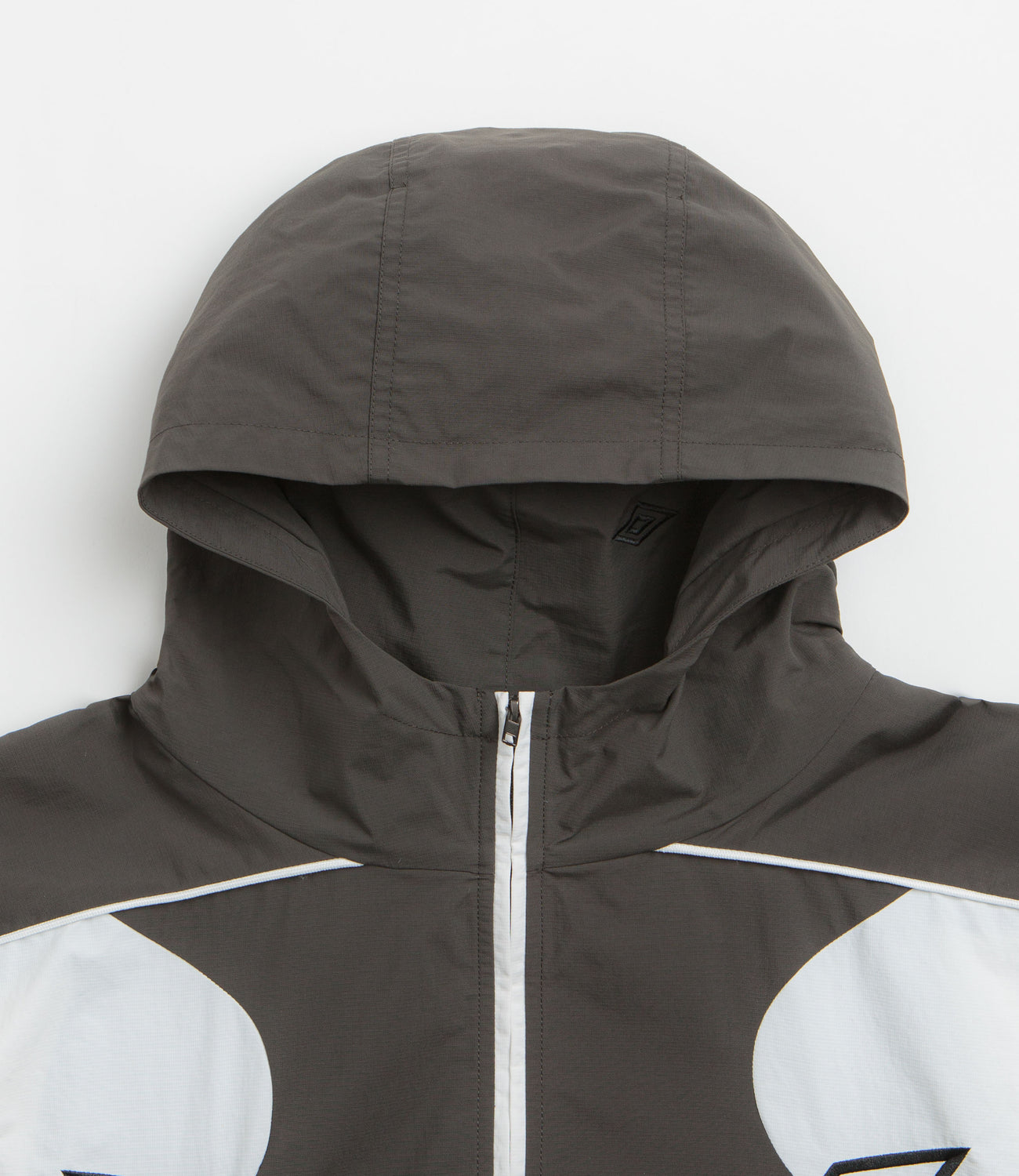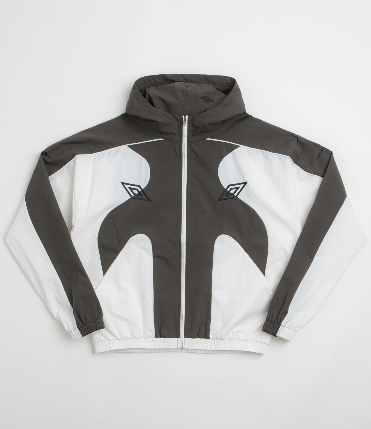 Built for movement and coverage, this track jacket blends contrast panelling with a built-in mask and piped seams for a bold, sporty look. Full-length zipper, elasticated cuffs and hem, and two front pockets make it practical on the move, while embroidered logos add a clean finish.