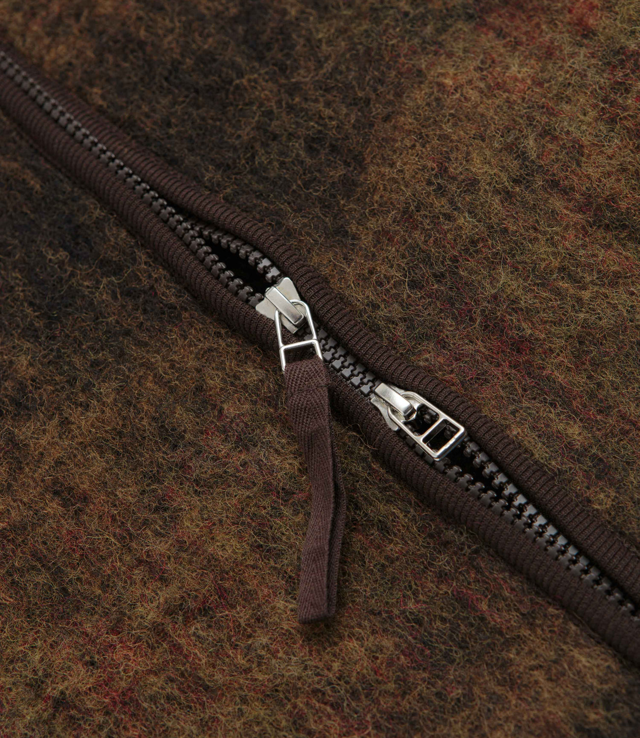 Perfect for layering when the temperature drops, this brown wool gilet brings warmth without weight. Crafted from a textured blend of wool and recycled polyester, it sits comfortably over hoodies, flannels, or light jackets, making it ideal for mornings on the trail or weekends exploring the city. The stand collar and full-length two-way zip help you adjust for comfort and ventilation, while zippered front pockets keep essentials close.
