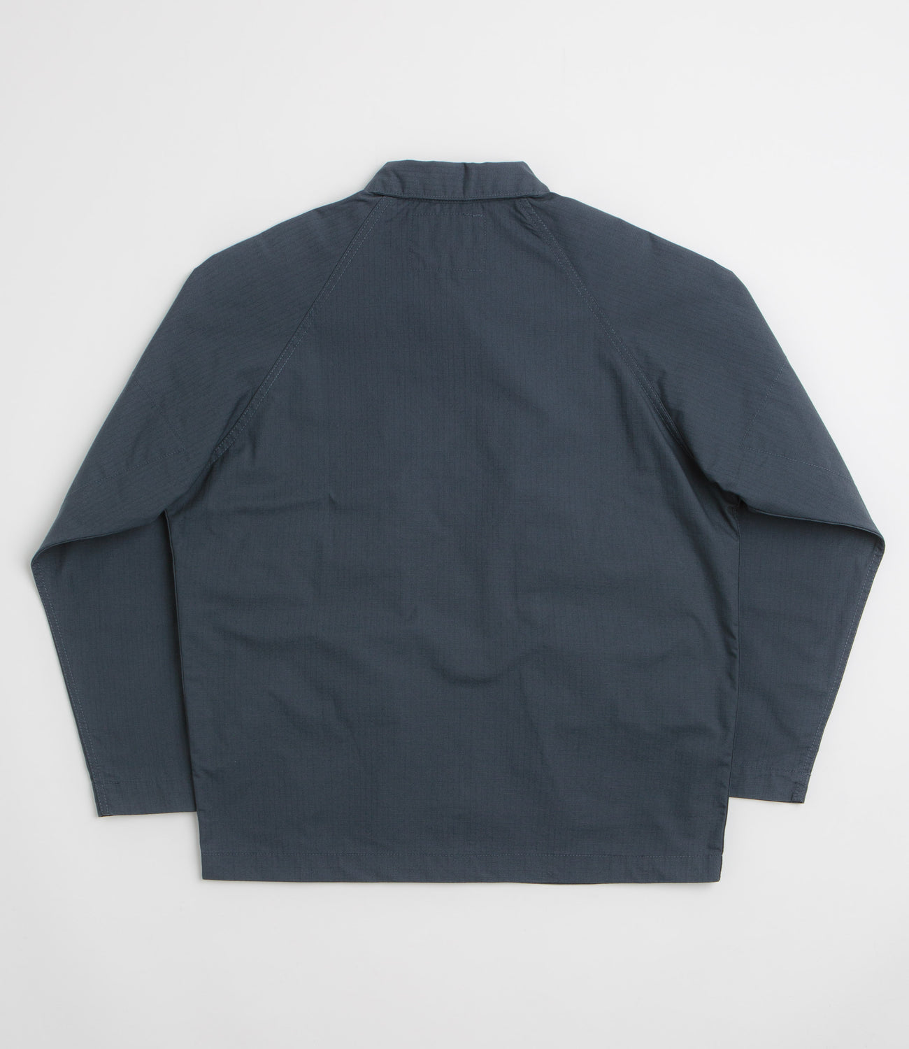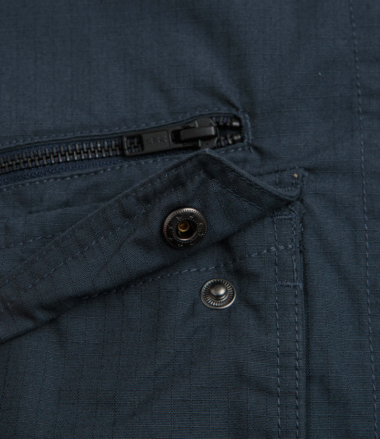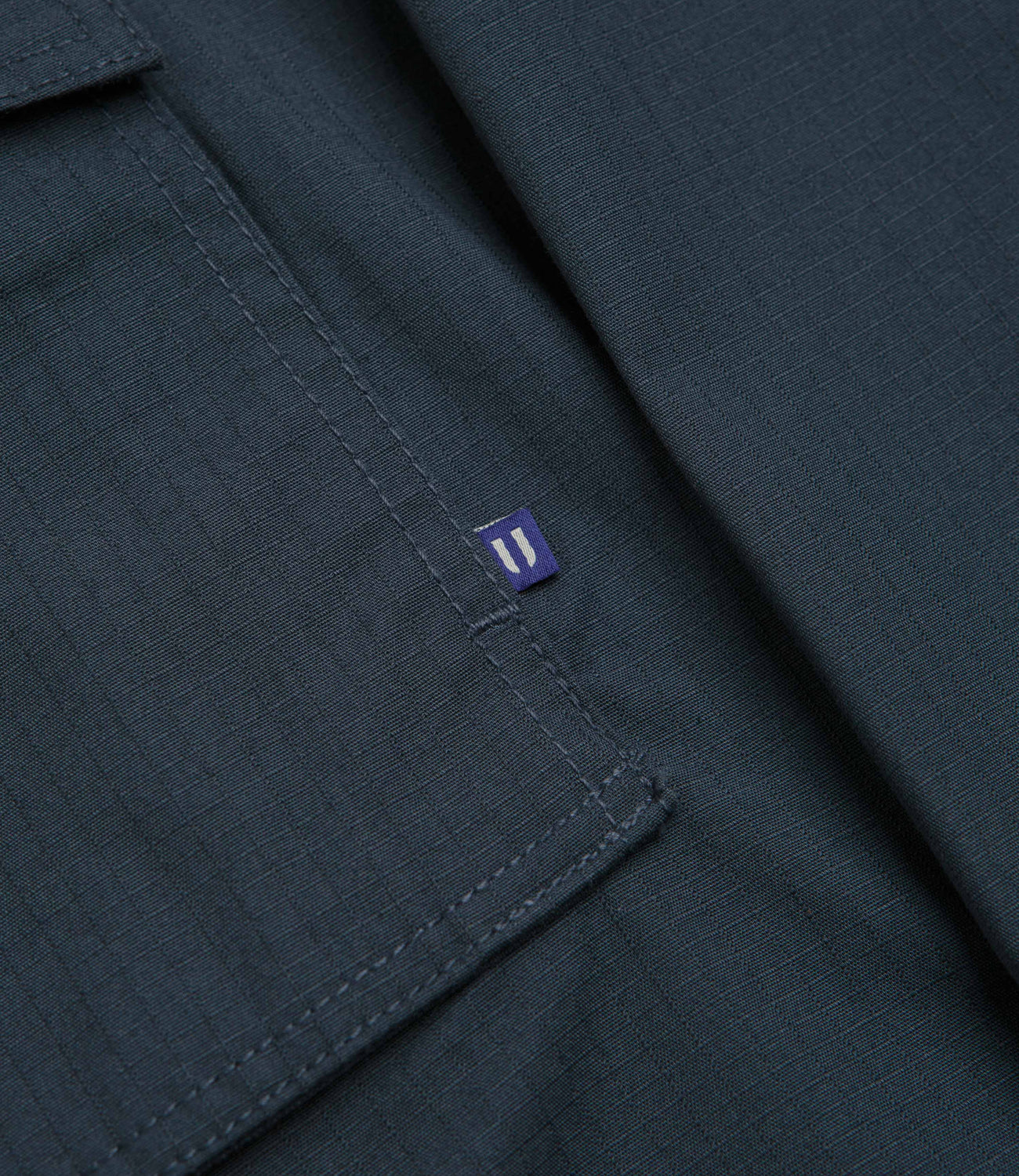 Made from 100% GOTS-certified organic cotton ripstop, this field jacket is built with durability and everyday utility in mind. Designed with a stand collar and a two-way, full-length zipper fastening, it’s cut with raglan sleeves for ease of movement. Gusseted chest pockets, zip pockets, and two side pockets provide plenty of storage, while reinforced elbows add strength where it counts.