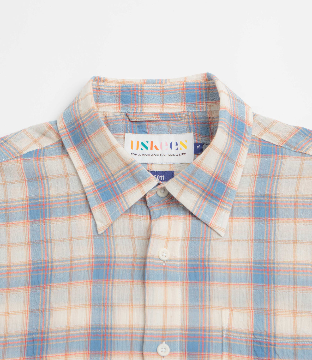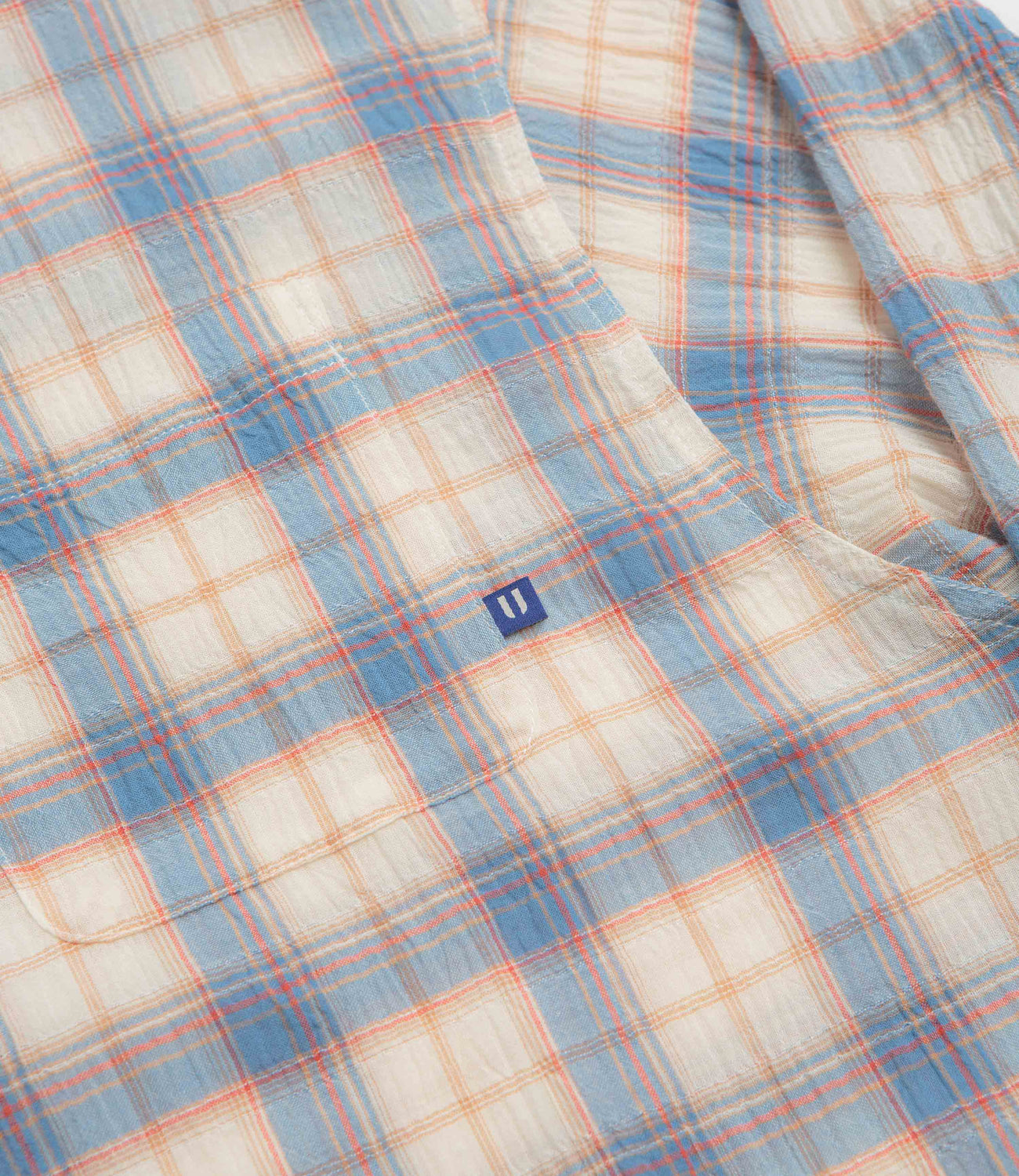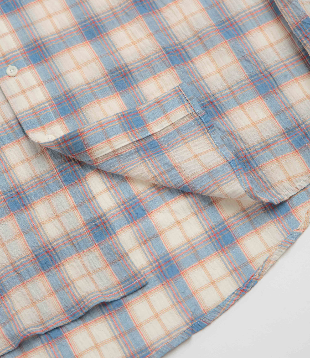 Crafted from 100% cotton seersucker, this shirt combines lightweight comfort with a textured finish and an all-over plaid pattern. Designed with a stand collar and full-length button fastening, it’s detailed with plant-based corozo hardware for a considered touch. A single chest pocket and woven label keep it classic, while a box pleat back and high-low hem add subtle shape. Finished with adjustable buttoned cuffs and a regular fit, it’s an easy layer that works across seasons.