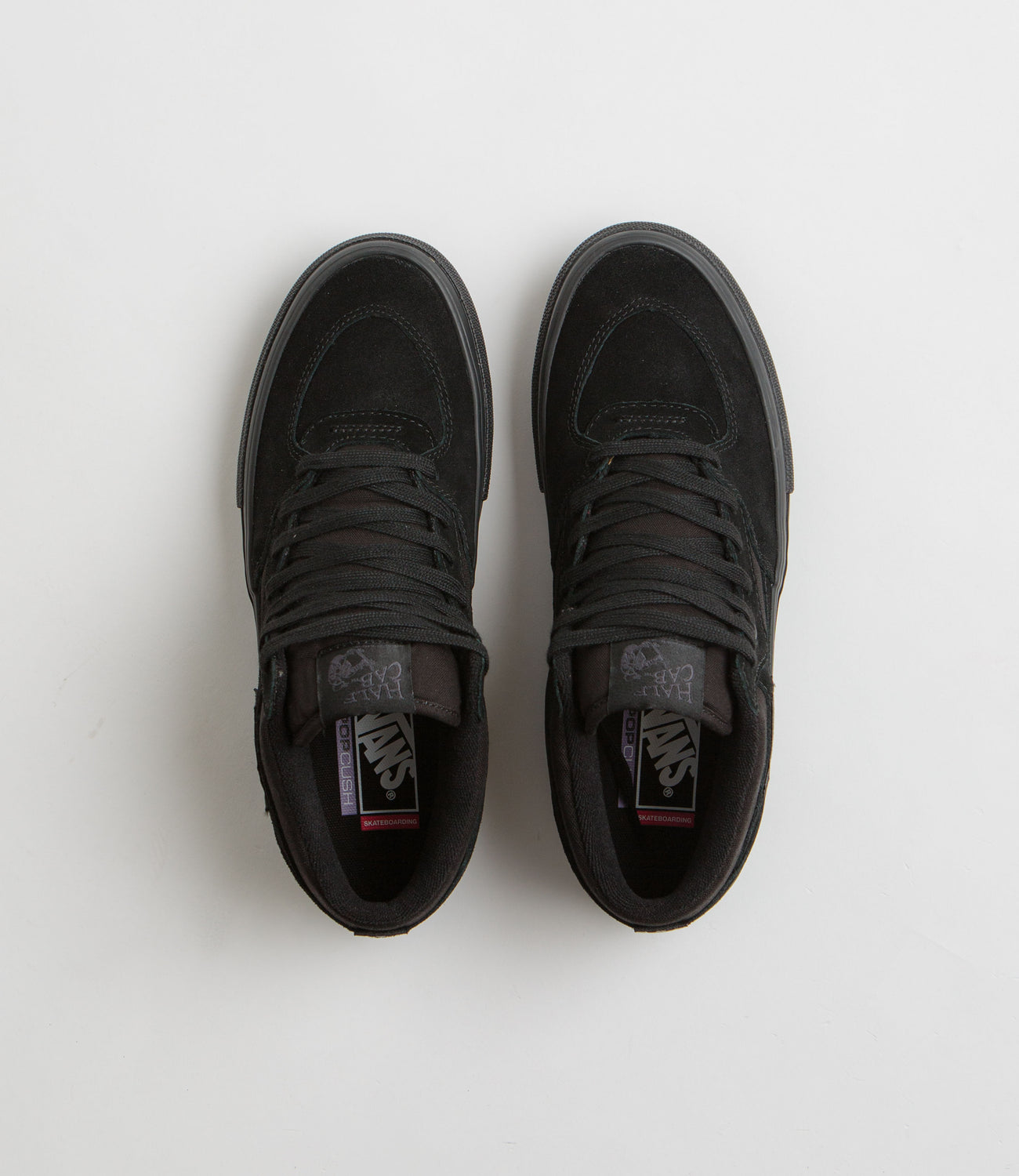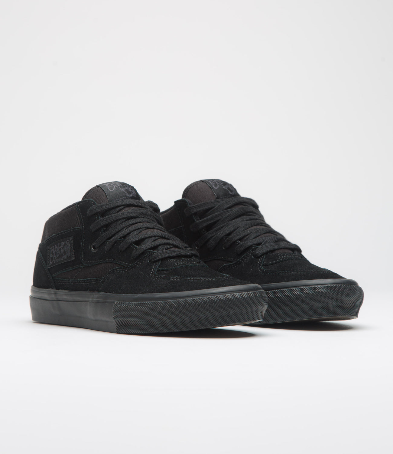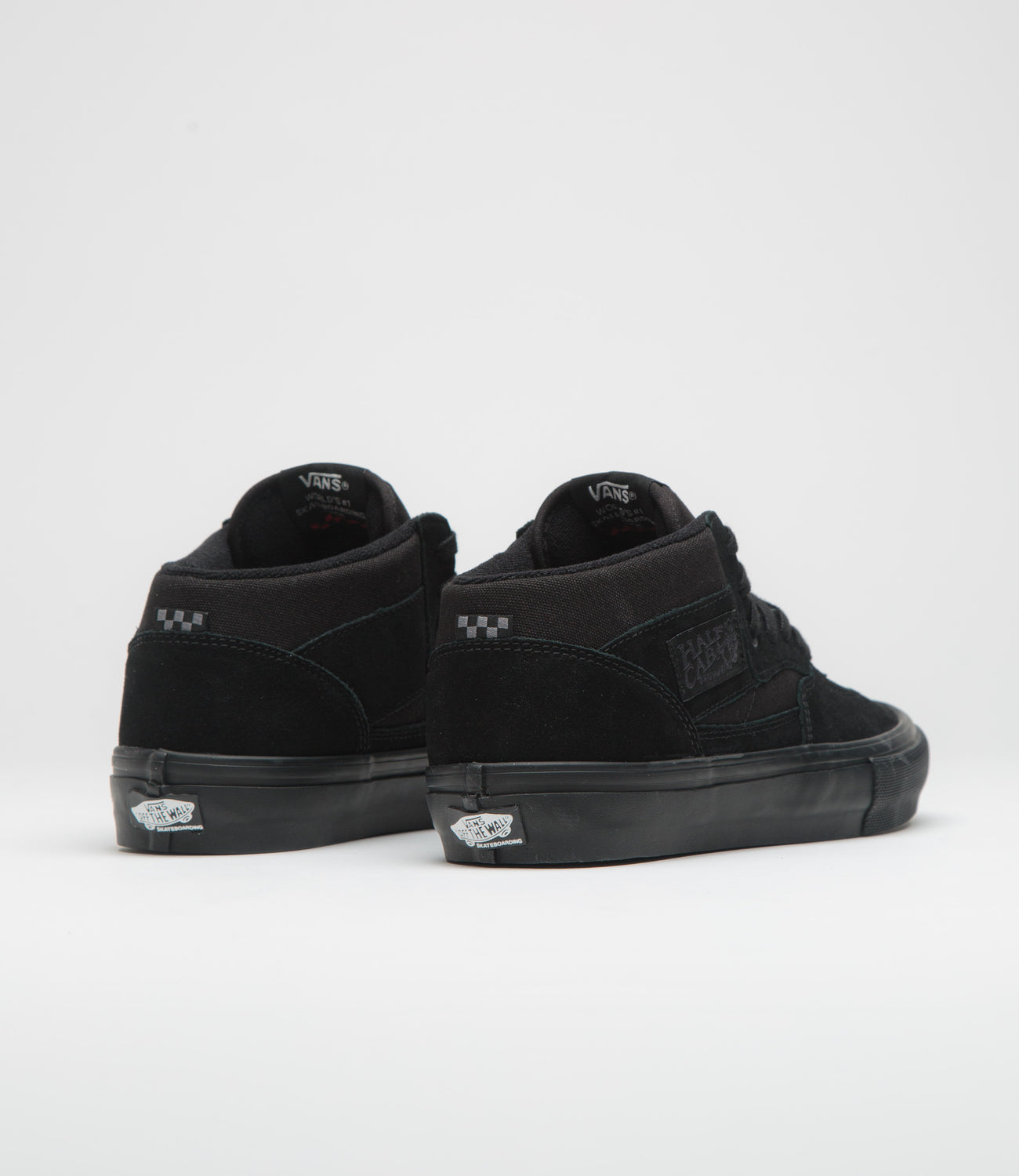 This all-black Half Cab from Vans’ Skate Classics line keeps things clean and hardwearing - upgraded with canvas and suede uppers, reinforced DURACAP™ layers, and a grippy SickStick sole that’s made to hold tight. Inside, POPCUSH™ insoles soften heavy landings, while the two-part foxing and original Waffle tread keep things locked in. Finished with checkerboard tabs, Half Cab flag labels, and all-black everything.