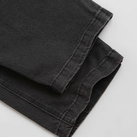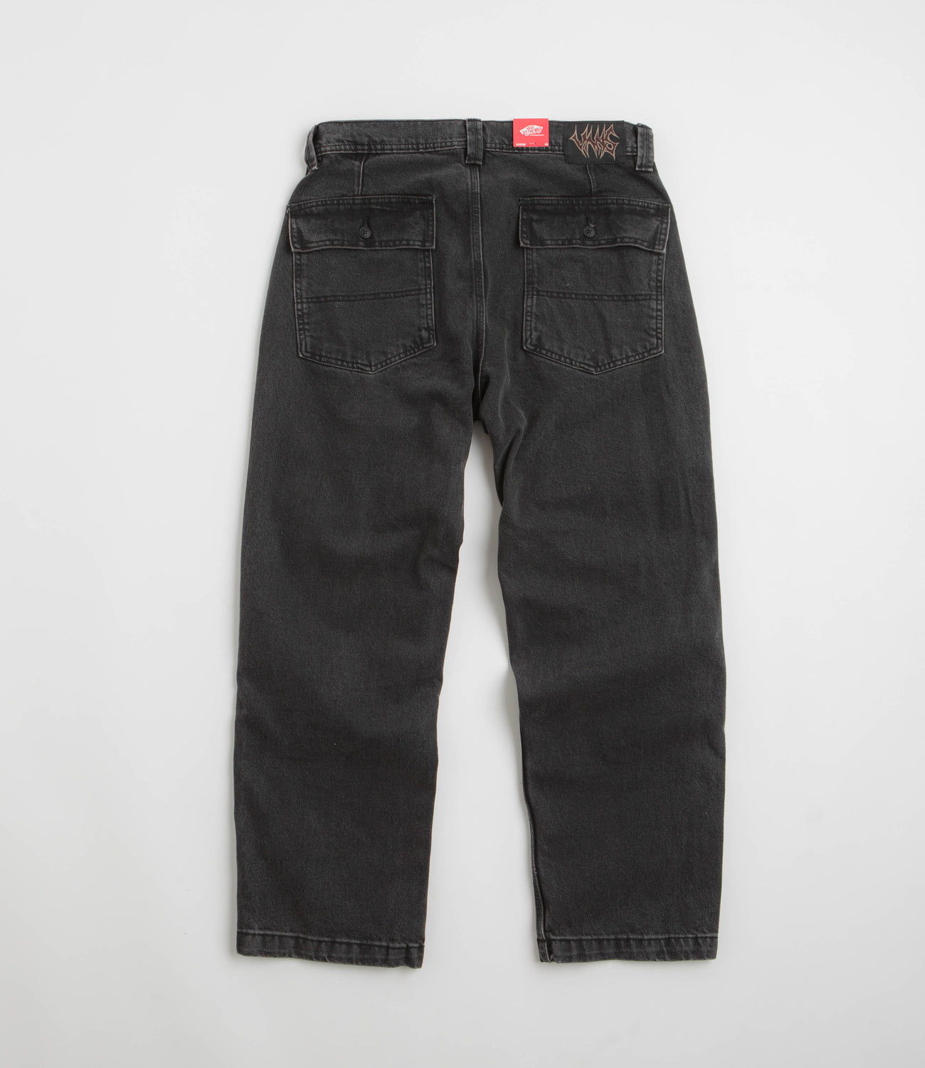 Vans Skate Loose Utility Jeans in Pirate Black. Loose fitting and made from 100% cotton, these washed Vans jeans are part of the brand’s Skate Classics collection. Featuring a belt loop waistband, a zippered fly and two side pockets, these black Vans pants are finished with two rear pockets and reinforced knee panels.
