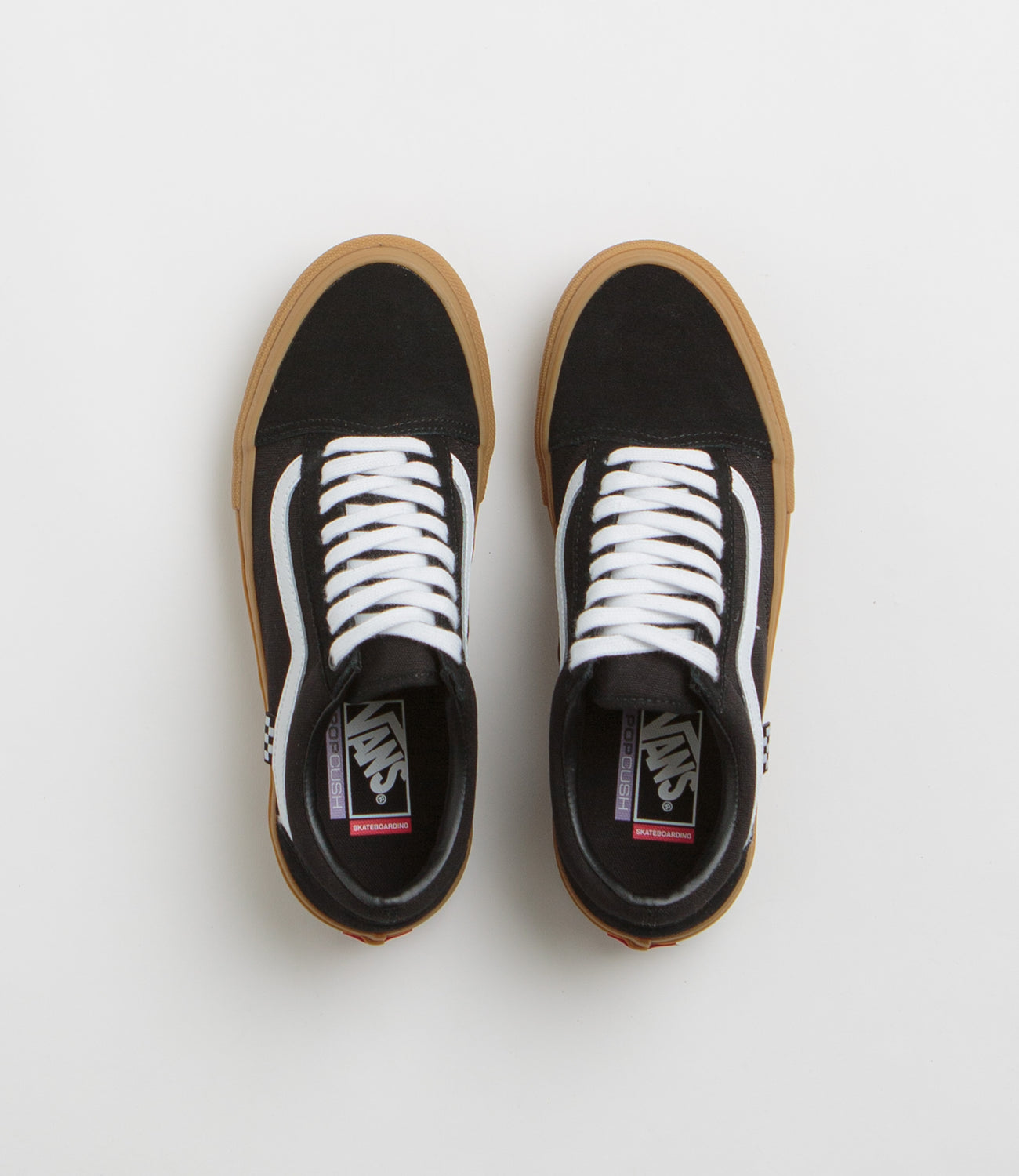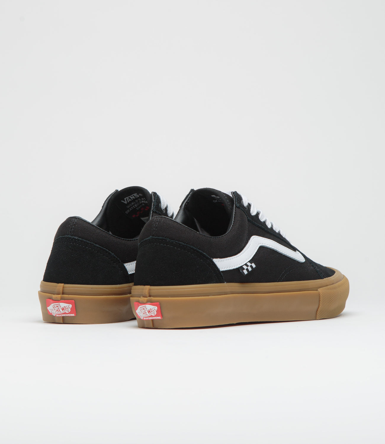 Part of Vans’ Skate Classics collection, the Skate Old Skool blends heritage style with skate-ready performance. Suede and canvas uppers are paired with a contrasting white sidewall stripe and classic checkerboard flag branding, while DURACAP™ underlays add durability where it counts. Cushioned POPCUSH™ insoles and SICKSTICK™ rubber compound keep every step comfortable and grippy, finished with a gum rubber outsole, padded collar, lock-in tongue straps, printed insoles, flat white laces, and Off The Wall Skateboarding rubber heel scabs.