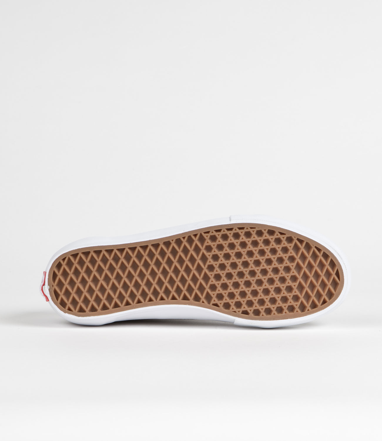 Vans Skate Old Skool Shoes in Cloud. Seen here in a neutral colourway with uppers made from a combination of canvas and suede, the Vans Skate Old Skool arrives as part of the brand’s on-going Skate Classics collection. Revised to feature updated DURACAP underlays, a new two-part foxing, a deeper toe knurl and a moulded heel counter, this low collar Vans skate shoe also features a PopCush footbed and a gum rubber Waffle outsole for maximised grip and traction. Flat laces and internal tongue straps combine for a locked-in fit, whilst each side wall is detailed with a white leather Vans stripe and checkerboard flag label. Finished with checkerboard internal heel linings and with Vans’ all-new ‘Off The Wall Skateboarding’ heel scabs.