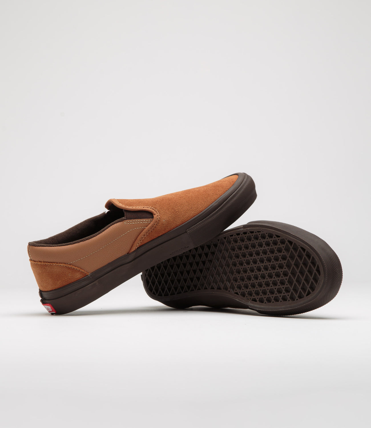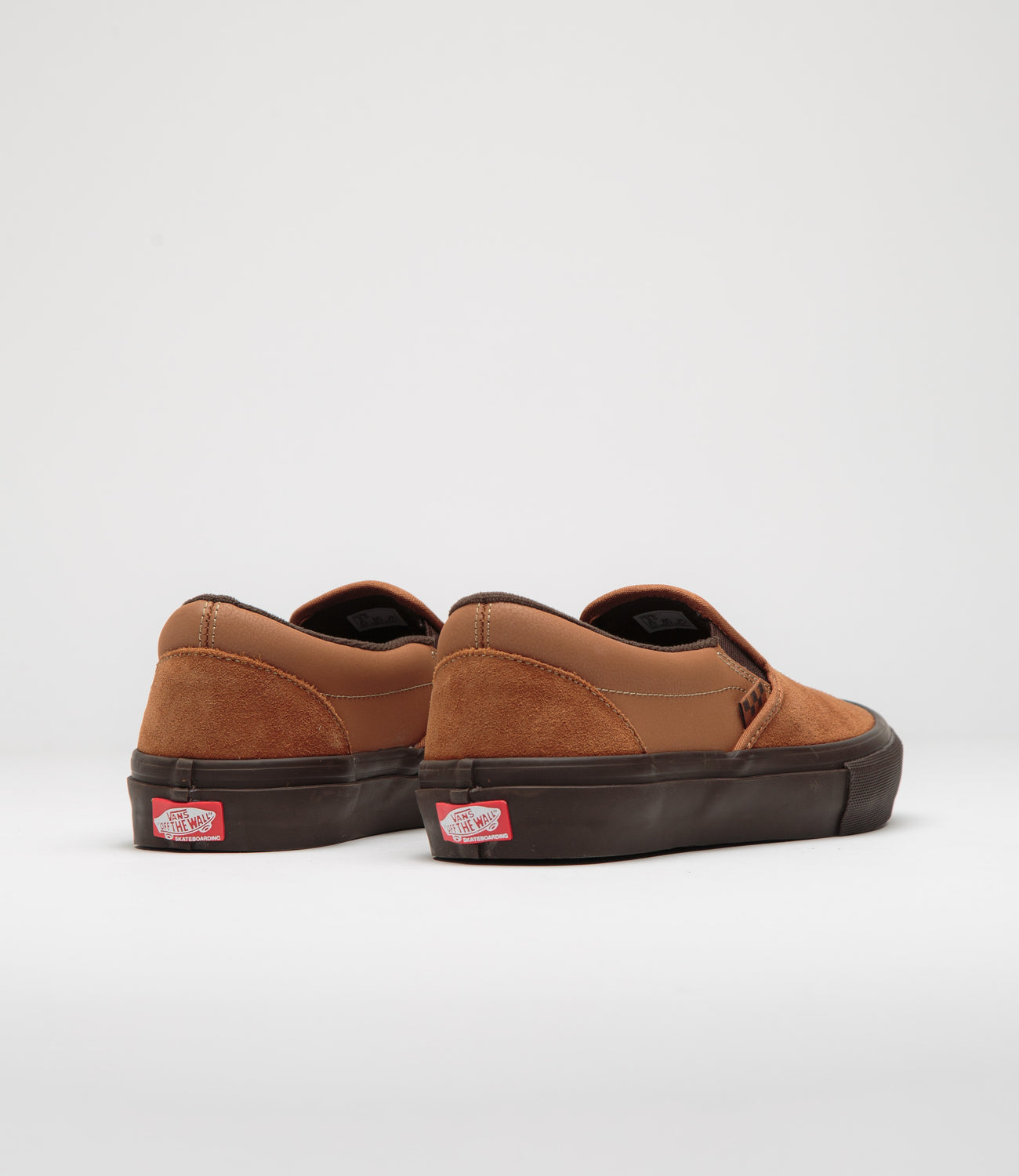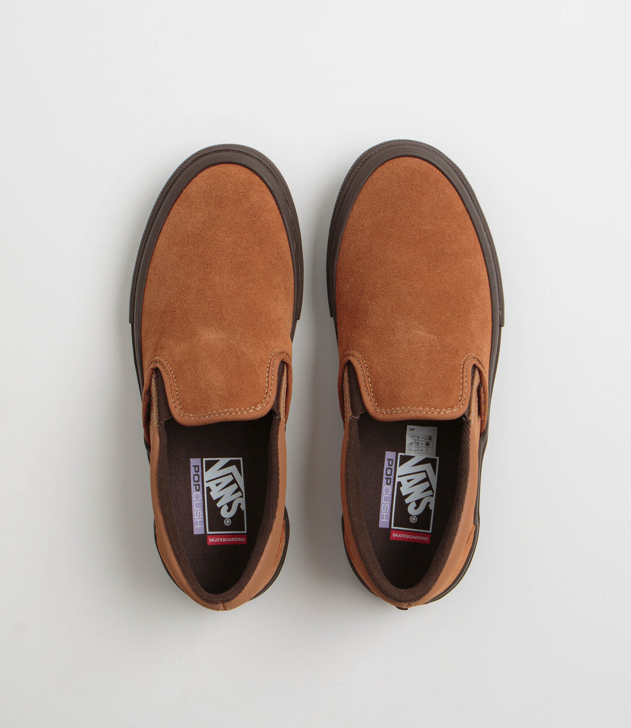 The classic Slip-On, stripped back and built for the session. This brown colourway gets a tighter, more responsive feel thanks to a new toe shape, single-wrap foxing, and a flexible fit without the internal heel counter. Breathable mesh lining keeps things cool, while canvas uppers with DURACAP™ reinforcements hold strong through wear. Underfoot, POPCUSH™ insoles absorb impact, and that trusted Waffle sole keeps the grip consistent. Finished with flag tabs and Off The Wall heel branding.