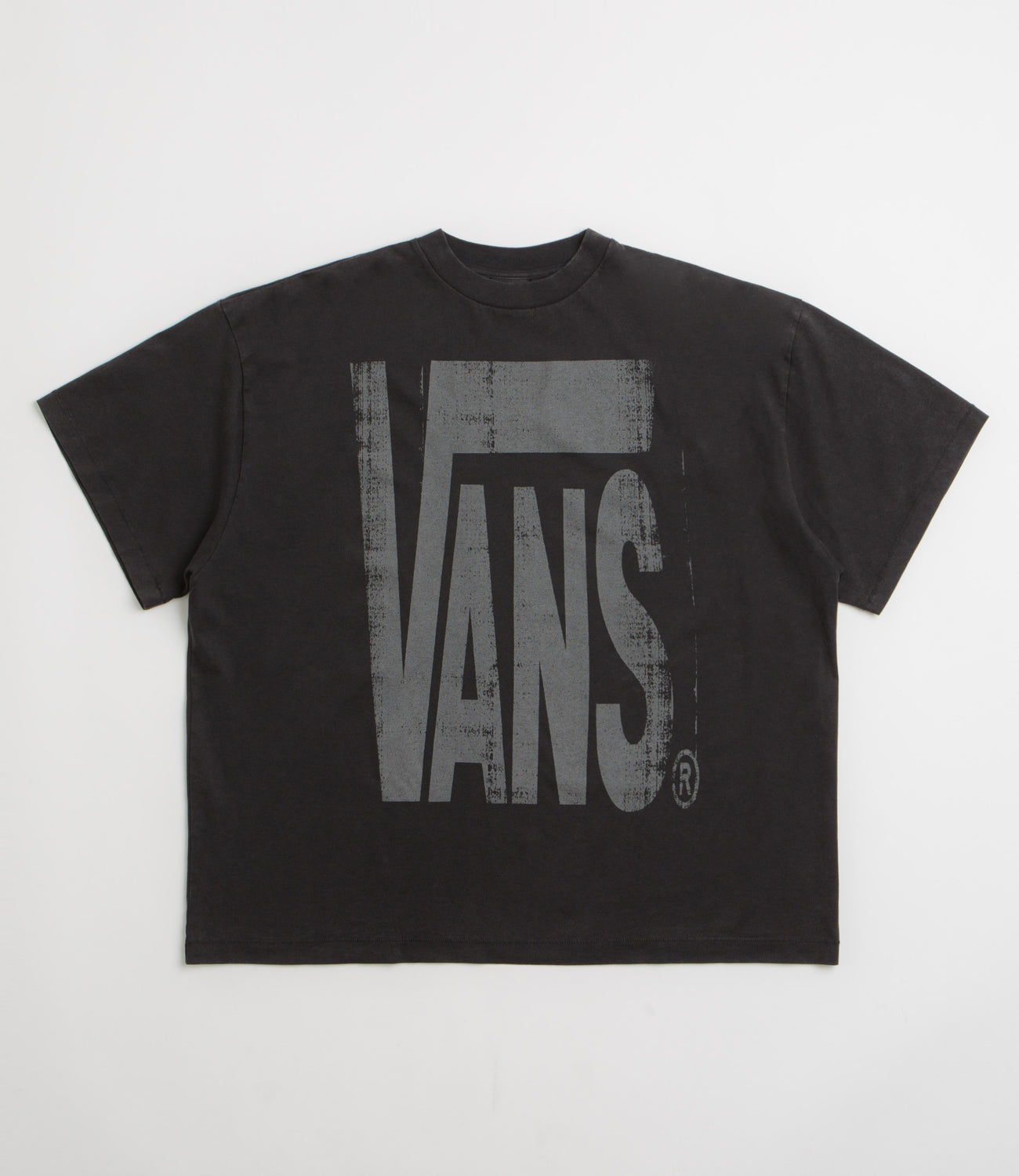 Vans x SlamJam AOD Brushed Logo T-Shirt in Washed Black. Oversized and made from 100% cotton, this Vans t-shirt is designed with a classic crew collar and a vintage wash. Finished in black with a straight hem and a screen printed chest graphic.