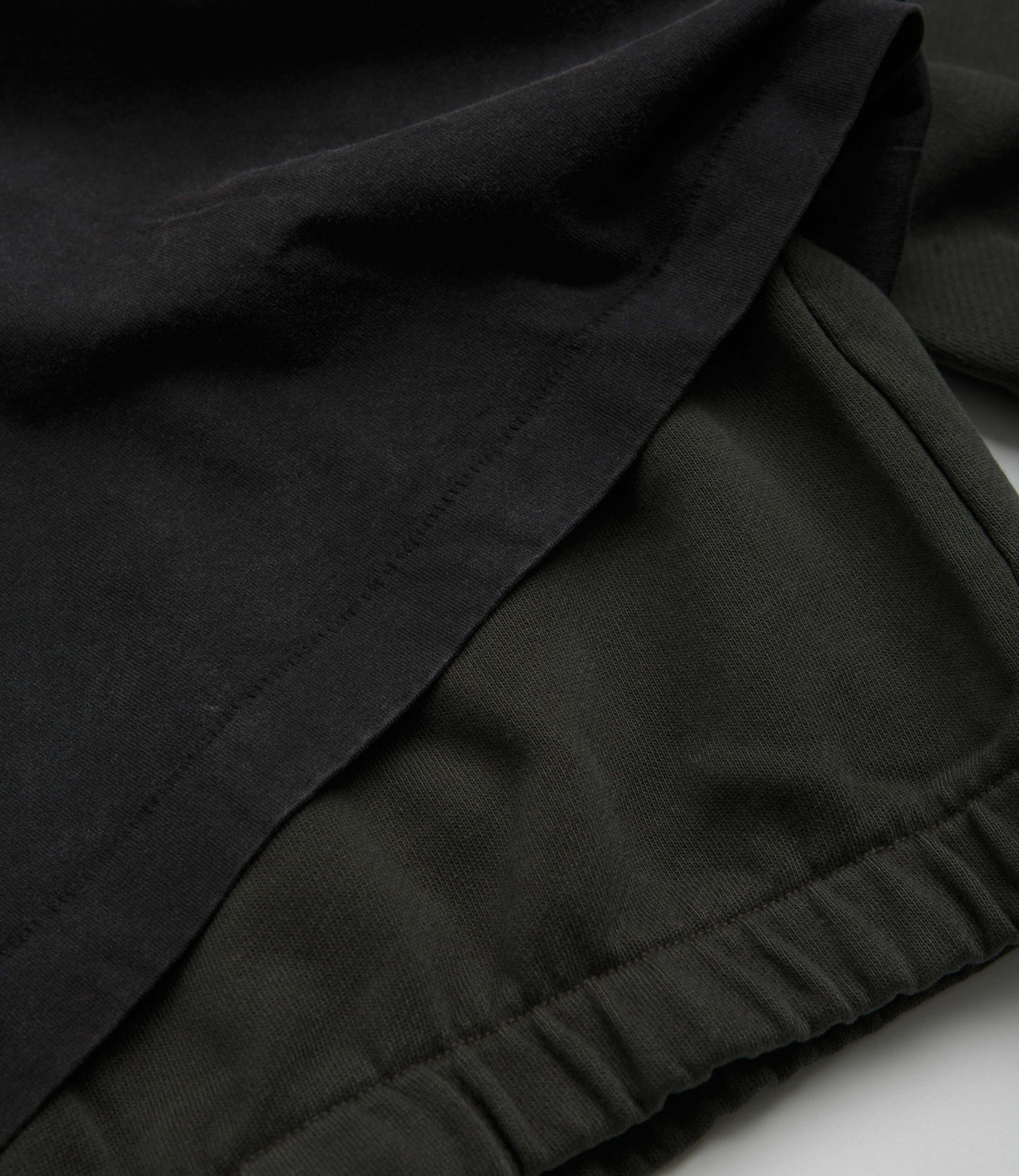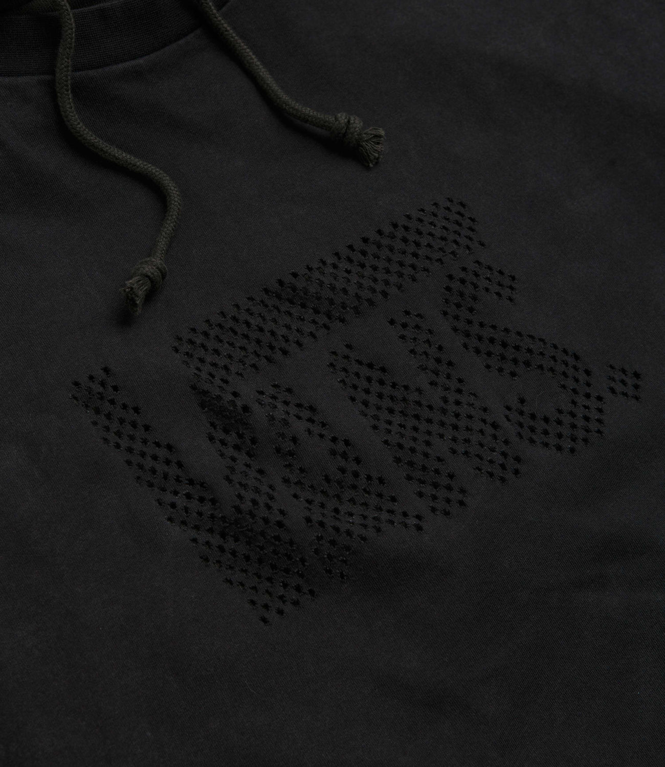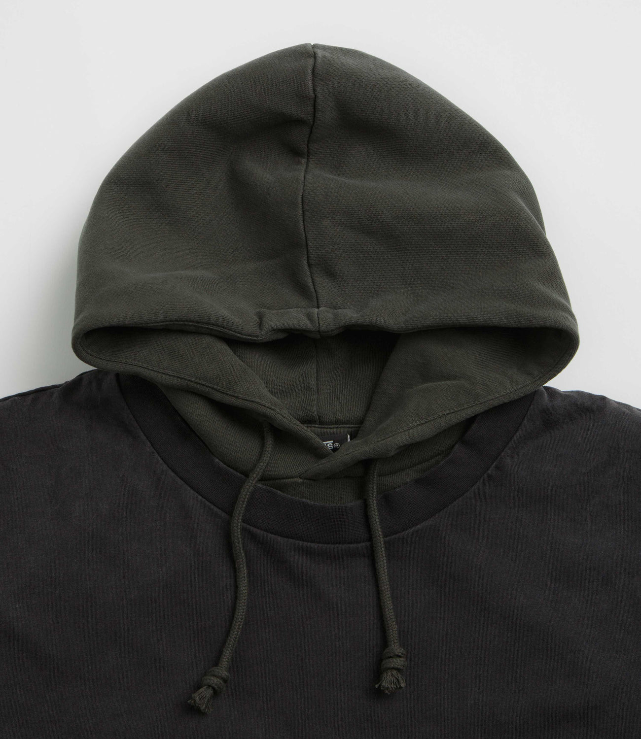 Vans x SlamJam AOD Lasered Hoodie in Washed Black. A 2-in-1 design, this vintage washed Vans hoodie is designed in collaboration with Act of Disagreement. Featuring a 100% cotton fleece hoodie and a 100% cotton t-shirt is, this black Vans hoodie is finished with an adjustable drawcord hood, elasticated cuffs and a lasered chest logo.