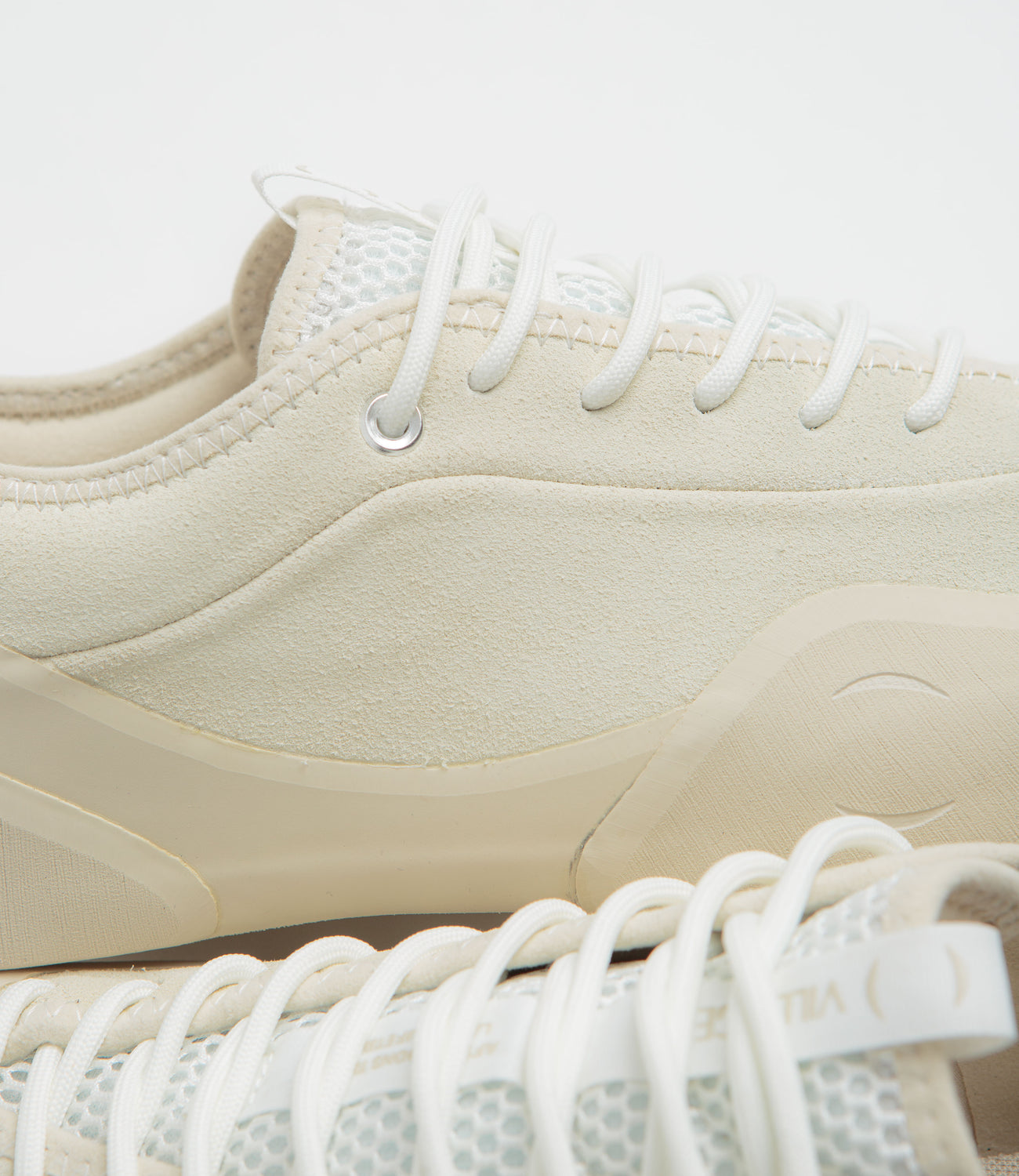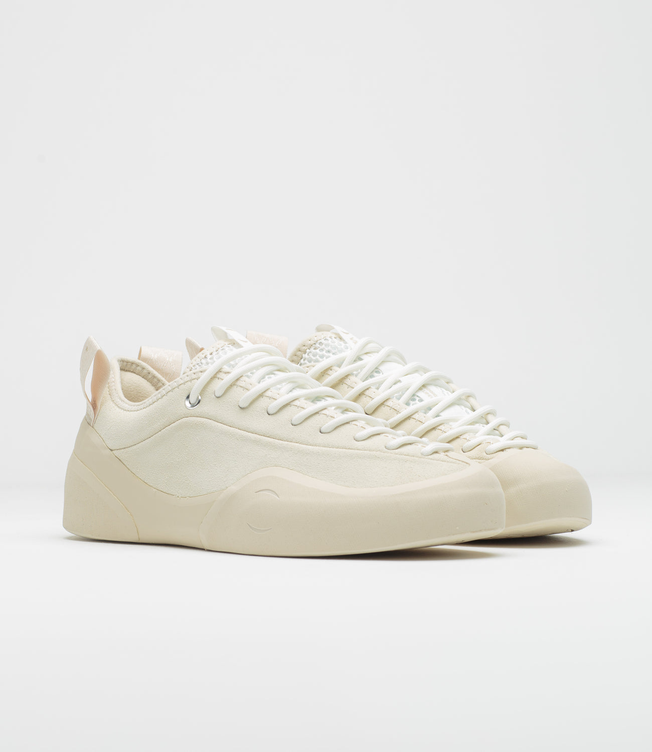 This 1.00 PM in beige cream suede leather keeps things clean and classic, built for smooth movement on and off the board. A mesh tongue and extended lacing system deliver breathability and a snug, precise fit, while replaceable rubber guards wrap the sides for grip and protection. Die-cut support, a cushioned sockliner, and Rubberglove Construction™ keep every step comfortable, and woven tongue labels, webbing pulls, a printed insole, and durable rubber outsole make it ready for long sessions anywhere.