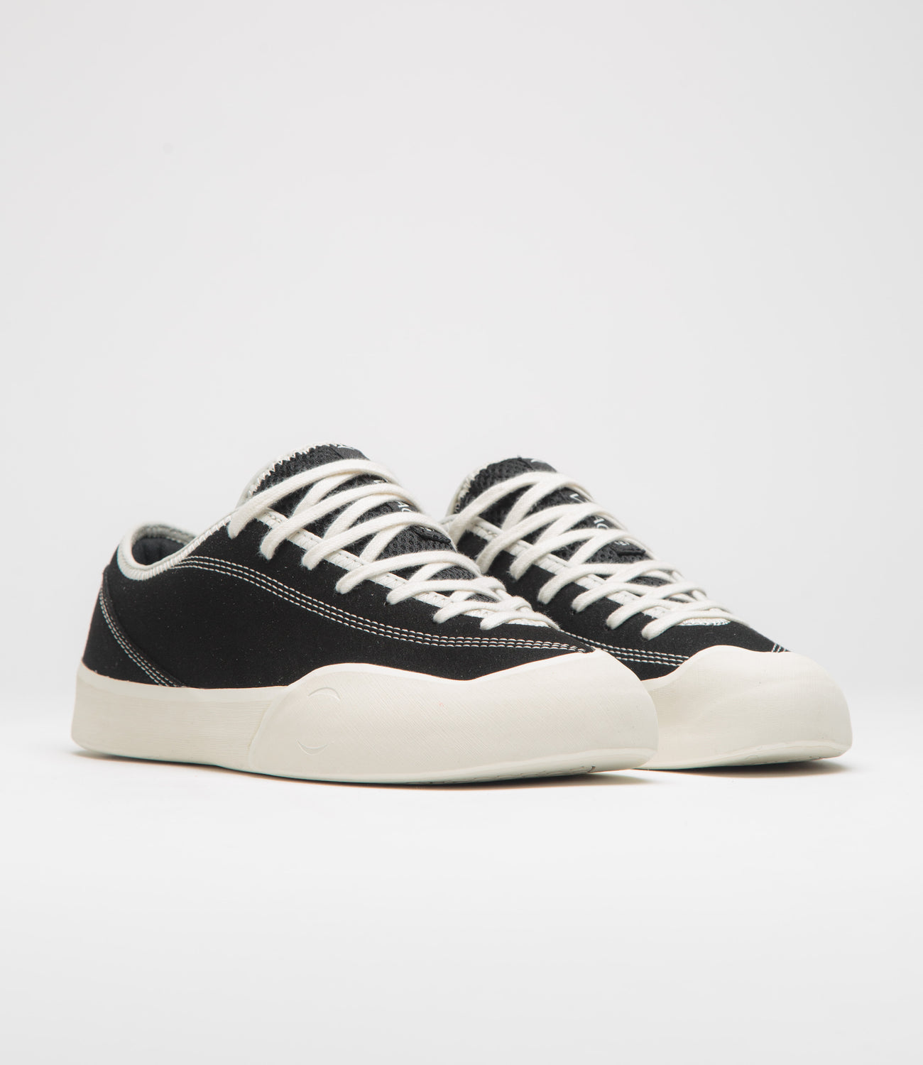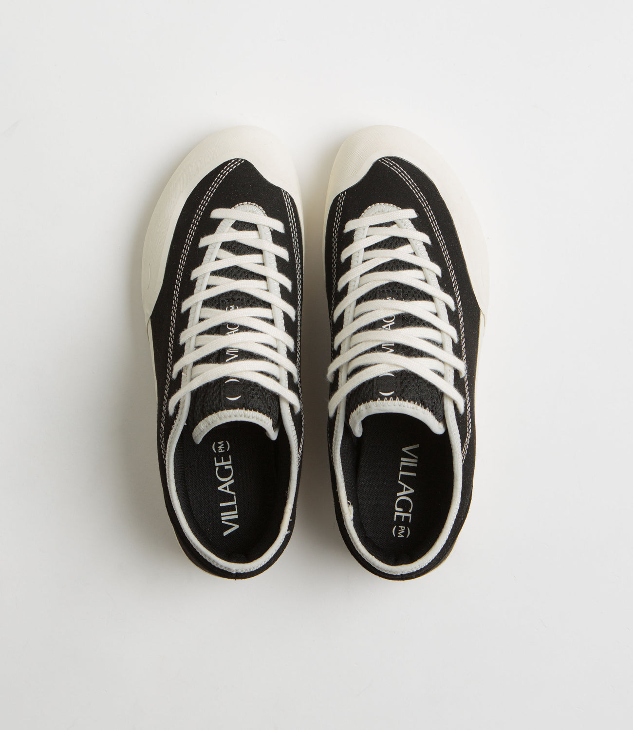 Village PM 1.30 PM Shoes in Black and Whisper White. Designed with contrast stitching and a microfibre upper, this Village PM 1.30 PM is styled with an extended lacing system and a protective die-cut rubber toe box. Featuring a cushioned sockliner and a sculpted mesh tongue, this black Village PM 1.30 PM is finished with printed insoles, woven tongue labels and a rubber outsole.