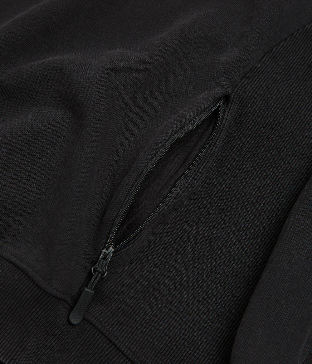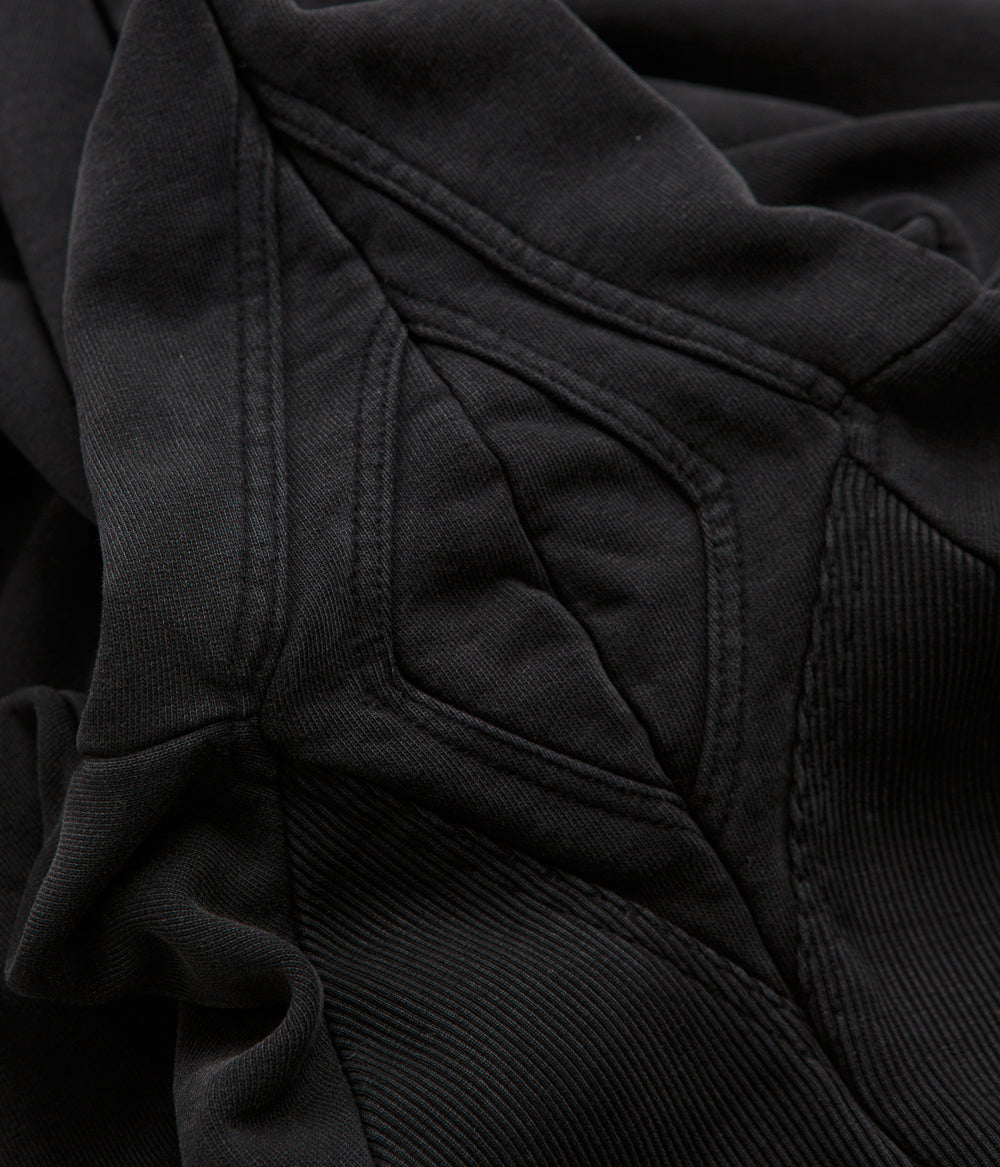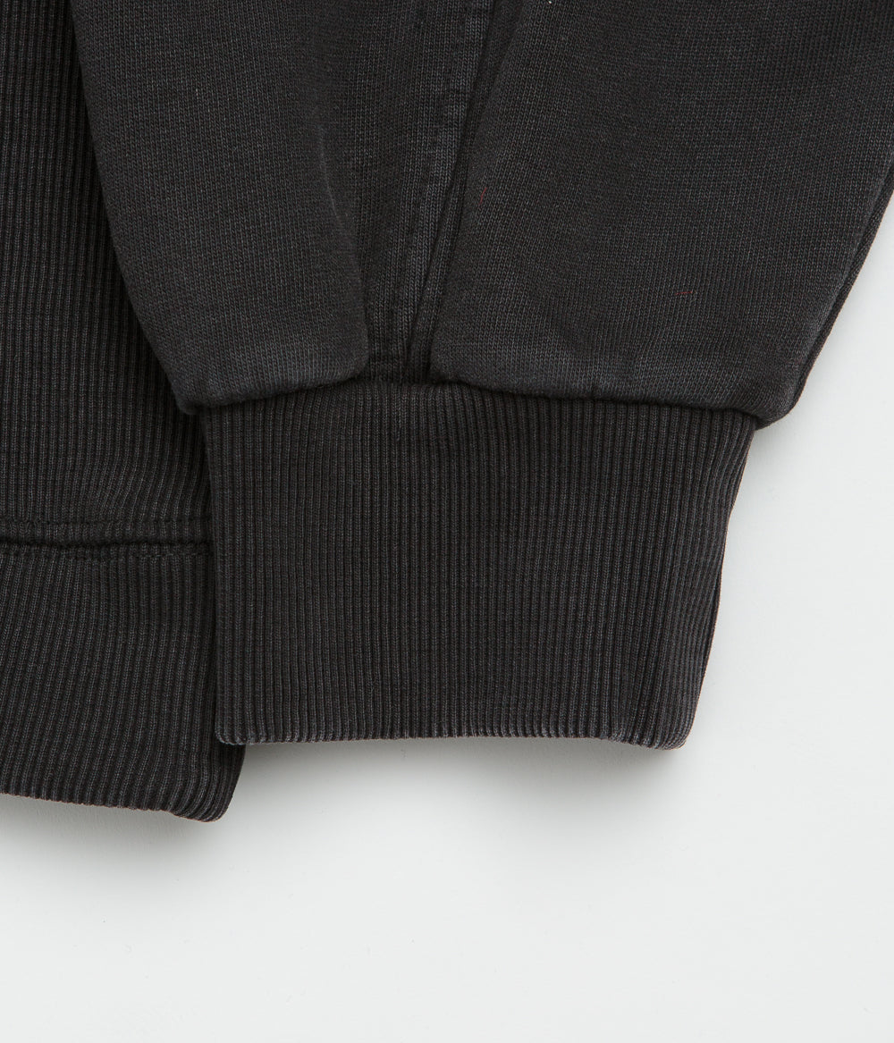 Wasted Paris x Umbro Boxy Hoodie in Faded Black. Boxy fitting with a panelled chest, this Wasted Paris hoodie is designed in collaboration with Umbro. Featuring an adjustable toggle-cord hood and zippered front pockets, this faded black Wasted Paris x Umbro hoodie is finished with ribbed cuffs and embroidered branding.