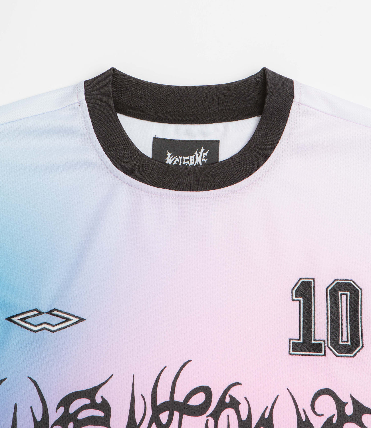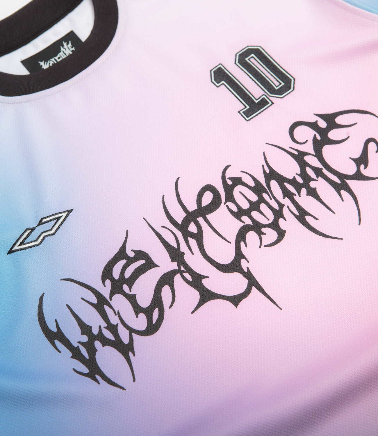 Cut in a relaxed, boxy fit, this multi-coloured soccer-inspired jersey brings bold energy to every layer. The breathable micromesh fabric keeps you cool, while an all-over sublimated gradient adds further detail. Finished with a rib knit collar, heat-transferred graphic, embroidered accents, and a woven label, it’s a jersey ideal for skate sessions and everyday wear.